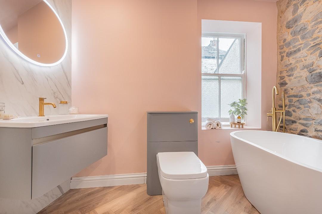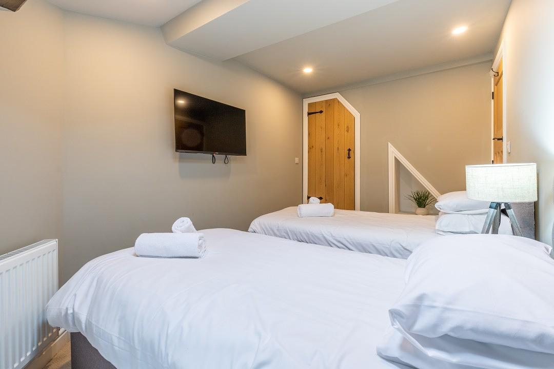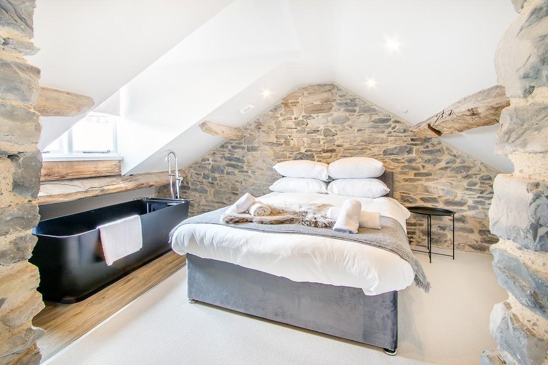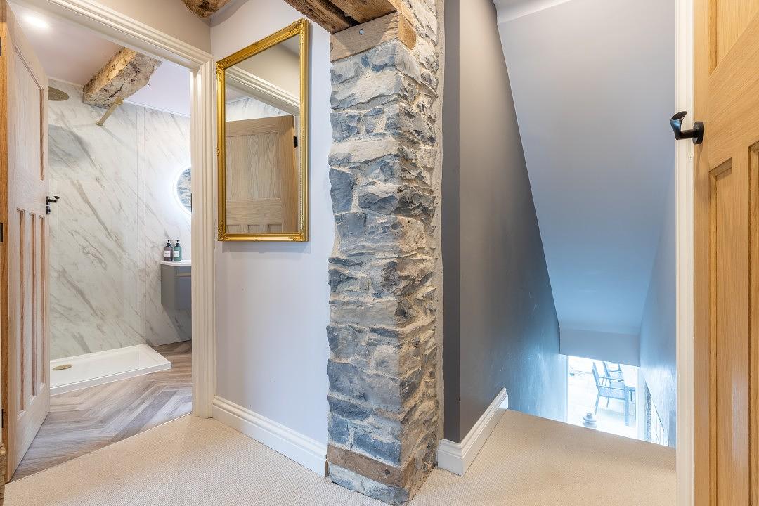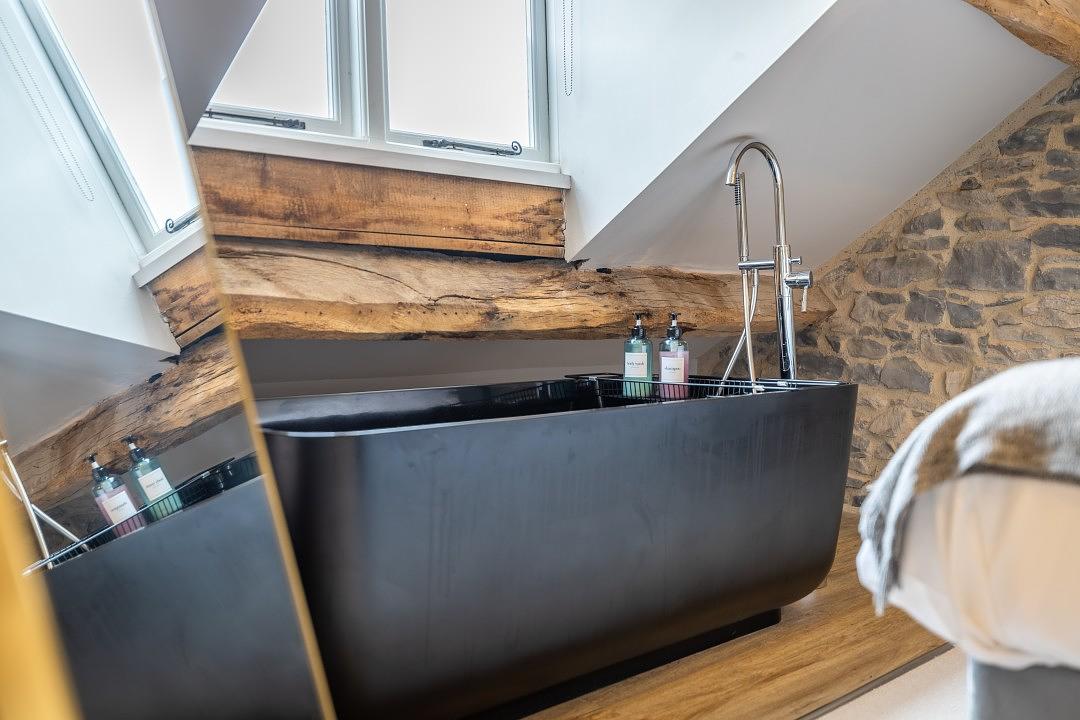 Upstairs, on the first floor, there are three stylish bedroom where deep comfort is ensurd. A handy twin room with two single beds, as well as the main bathroom with a freestanding bath and waterfall tap, separate shower, wash basin and WC. Ascend a second staircase to the top floor to find a lounge/ dressing area, elegant master bedroom with a freestanding luxury stone bath. There is also a wash basin and WC tucked off the dressing room.