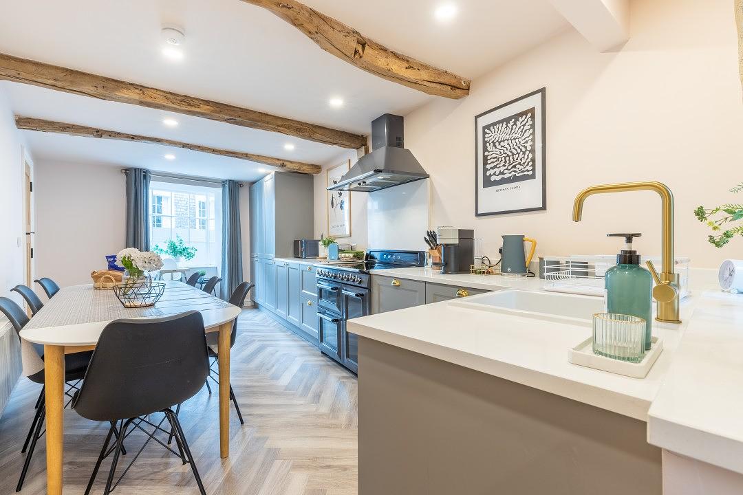 The ground floor includes a spacious and comfortable sitting room and separate snug area, contemporary kitchen diner fitted to a high specification to include a Smeg range cooker, instant hot water tap and a large dining table. There is direct access to a private courtyard garden, which is perfect for long summer nights and alfresco dining.
