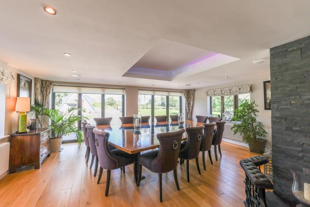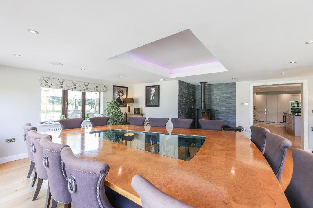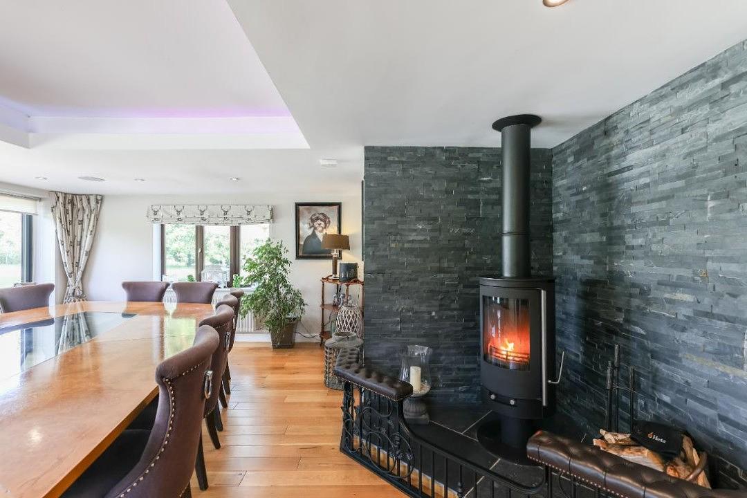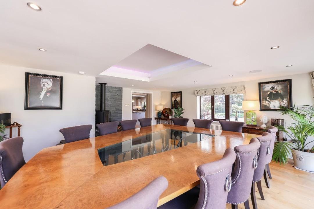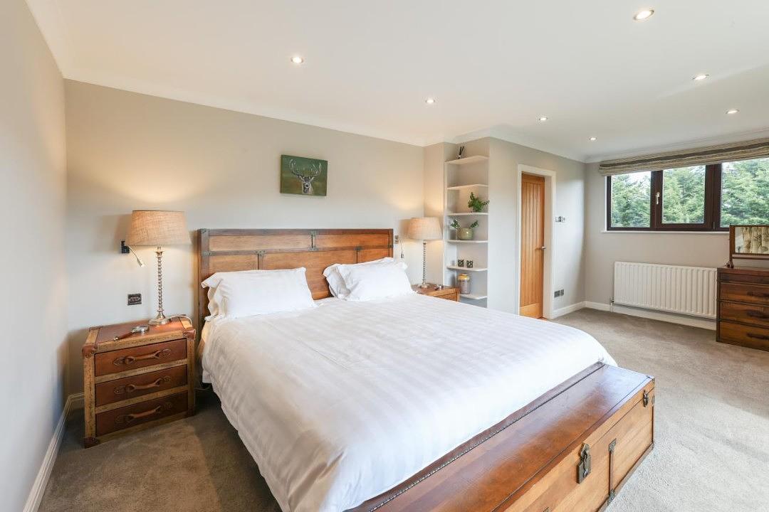 Antler House offers spacious and stylish living areas designed for relaxation and socializing. The beautifully decorated lounge features plush seating, elegant furnishings, and large windows that let in plenty of natural light while offering stunning views of the surrounding countryside. A cosy log-burning stove adds warmth and charm, making it the perfect place to unwind with family and friends.