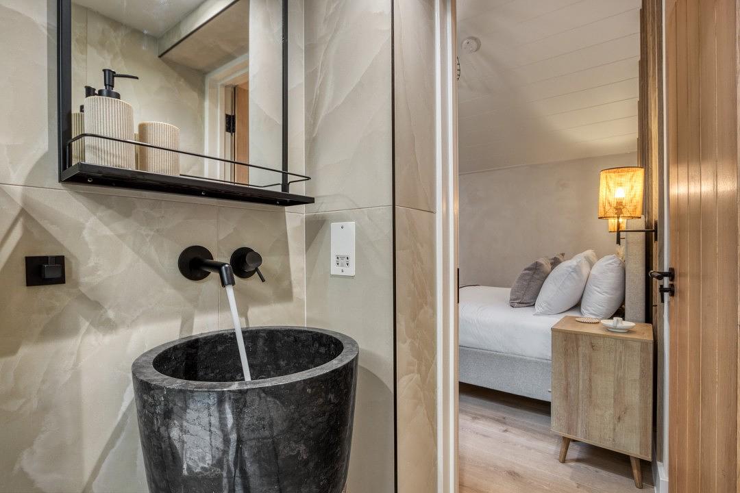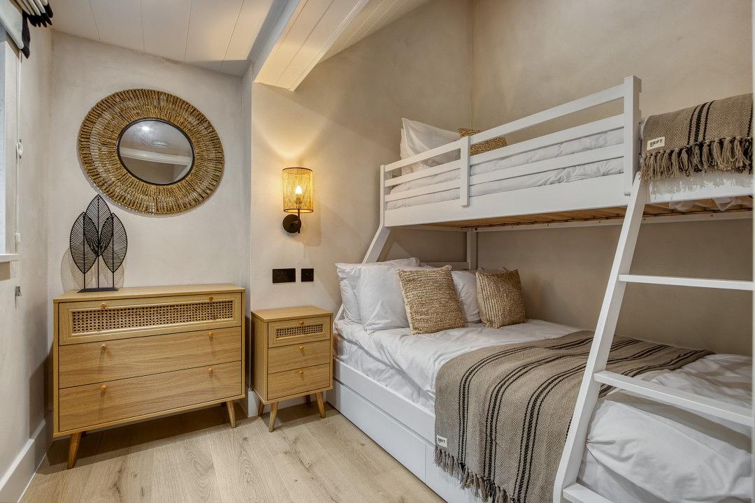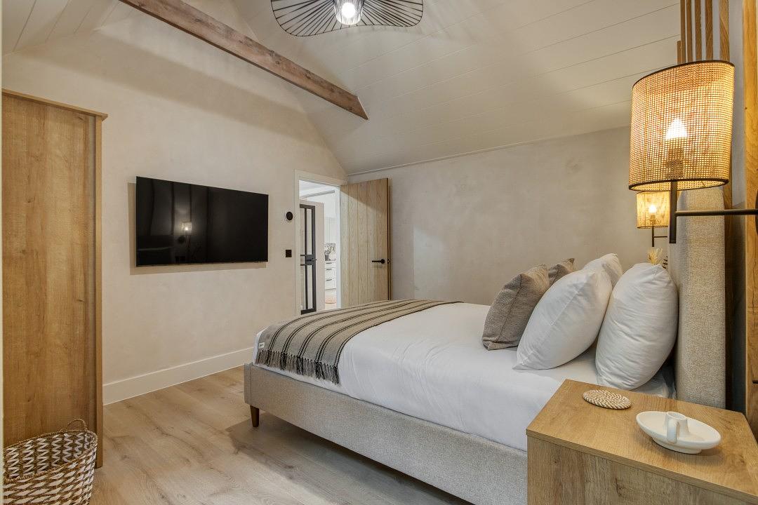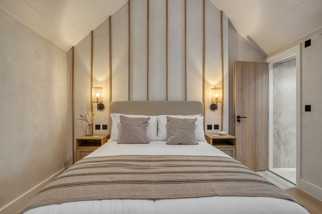 The penthouse offers two tranquil bedrooms designed with relaxation in mind. The master bedroom features a king-sized bed, while the second bedroom provides additional sleeping space. The bedrooms are styled in a calming Japandi aesthetic, with natural materials and soft tones that create a peaceful and restful environment. For added comfort, both the lounge and master bedroom have 55-inch smart TVs.