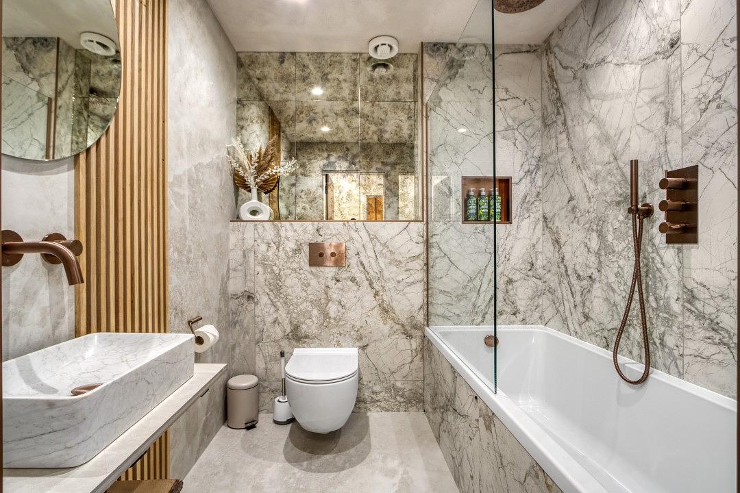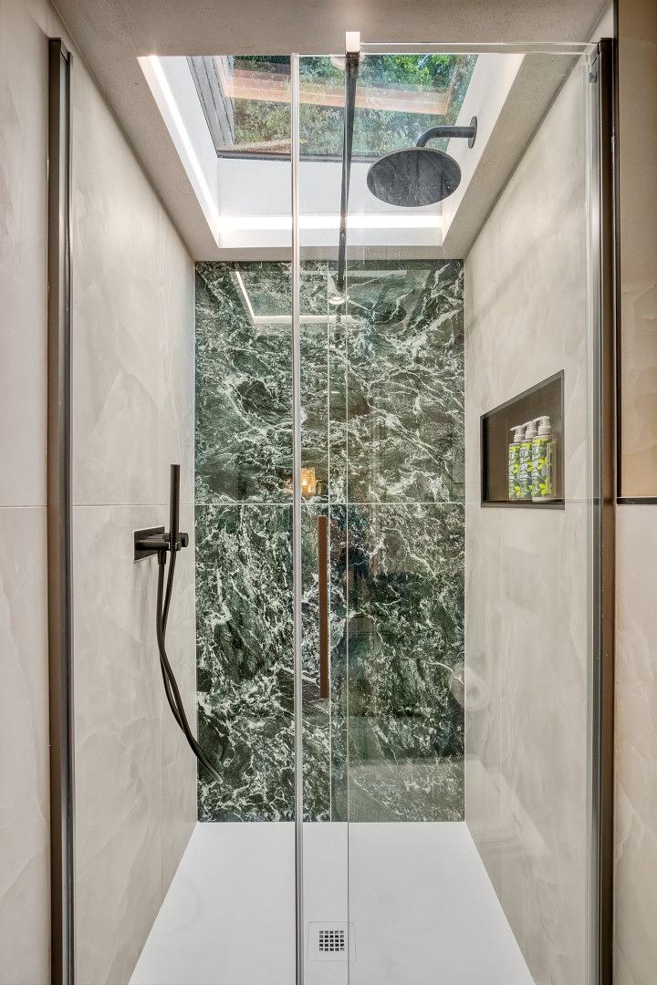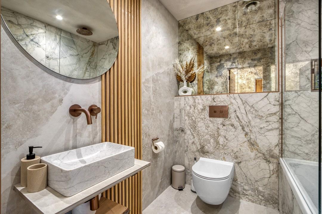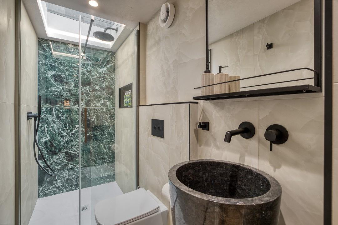 The apartment features two luxurious, spa-like bathrooms, one of which is an en-suite to the master bedroom. Both bathrooms are designed with high-end finishes and offer a soothing atmosphere, perfect for unwinding after a day of exploring. The Japandi-inspired design enhances the calm, coastal vibe, making it the ideal space to relax and rejuvenate.