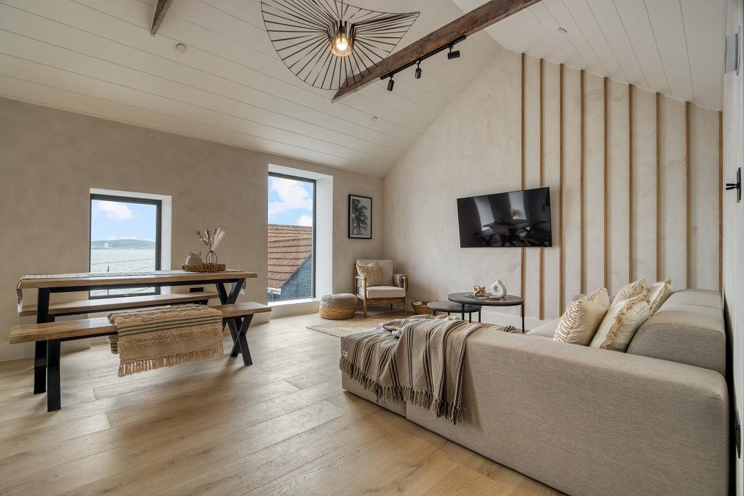 Perched on the picturesque seafront of Mumbles Bay, this beautifully designed penthouse apartment offers a serene coastal retreat for up to 5 guests. Blending Japandi-inspired elegance with modern comforts, this eco-conscious haven provides the perfect balance of relaxation and adventure.