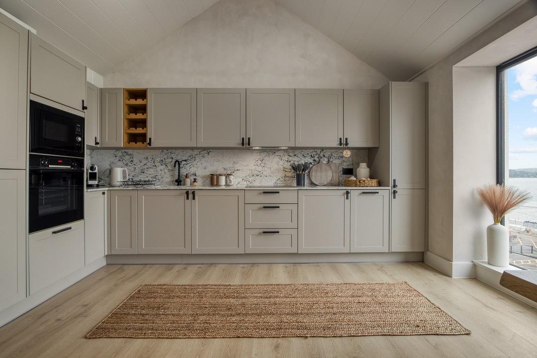 Nestled in Mumbles, a charming coastal neighbourhood just a stone's throw from Swansea, lies the gateway to the stunning Gower Peninsula. A haven of salt marshes, golden beaches, quaint chapels, lush woodlands, and dramatic cliffs, this area offers the perfect mix of serenity and adventure. Now home to three eco-conscious flats, the building embraces a Japandi style, blending soothing neutral tones, natural textures.
