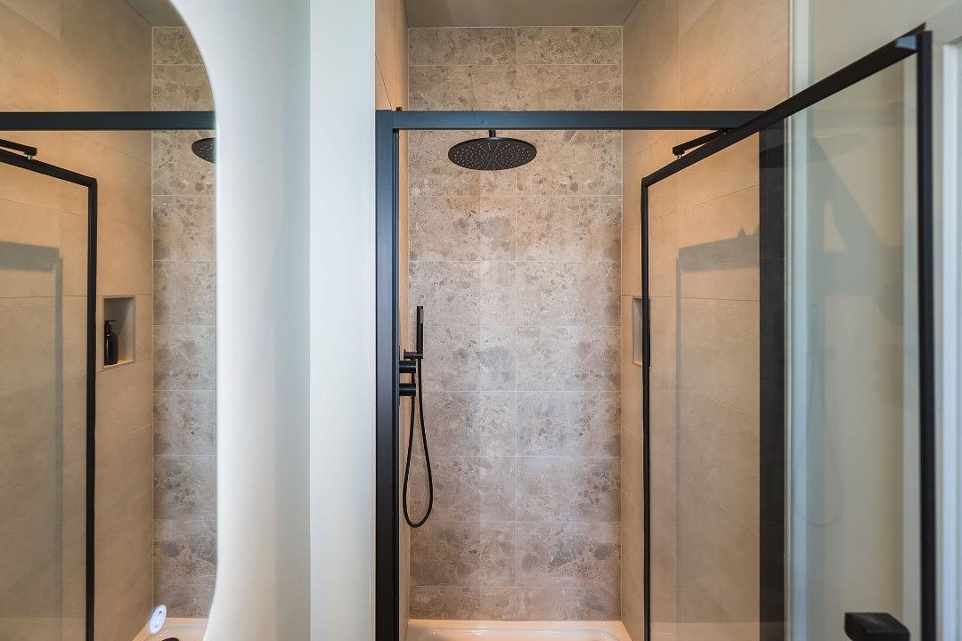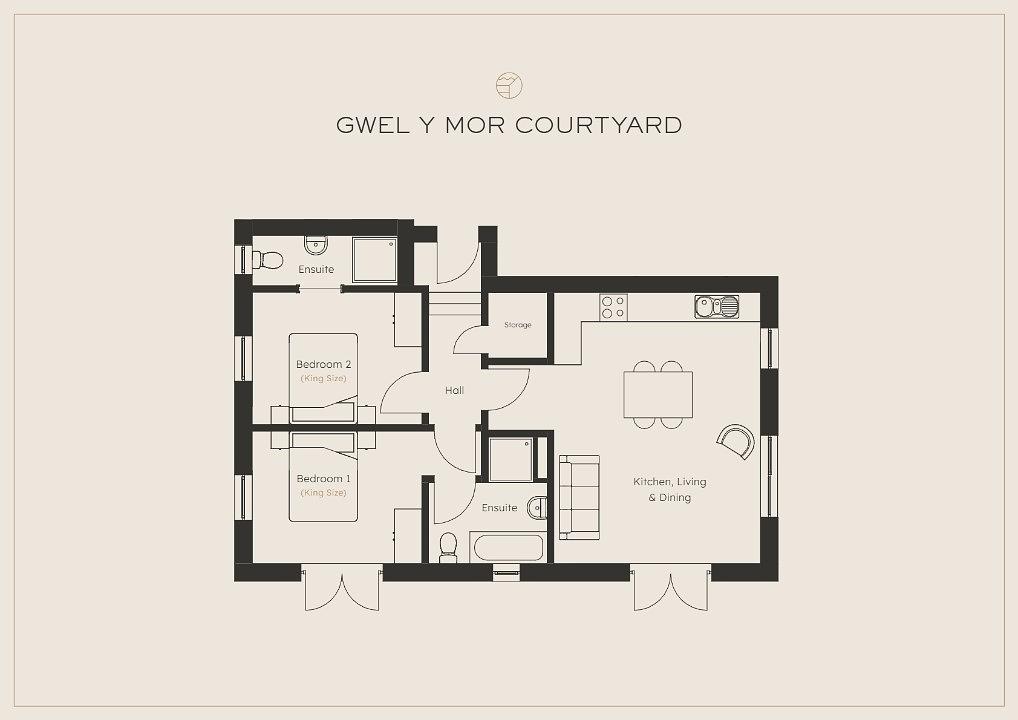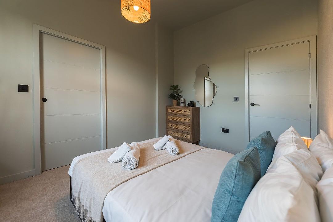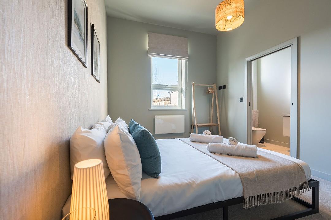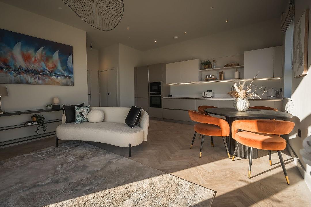 This spacious two-bedroom apartment sleeps up to four guests, with high ceilings and an open-plan layout that fills the living spaces with light and a sense of ease. Both bedrooms feature king-size beds and their own ensuite bathrooms, so you’ll have a little extra privacy to unwind. One ensuite includes a luxurious bath to soak in, while both offer walk-in showers, making freshening up after a day at the beach a treat.