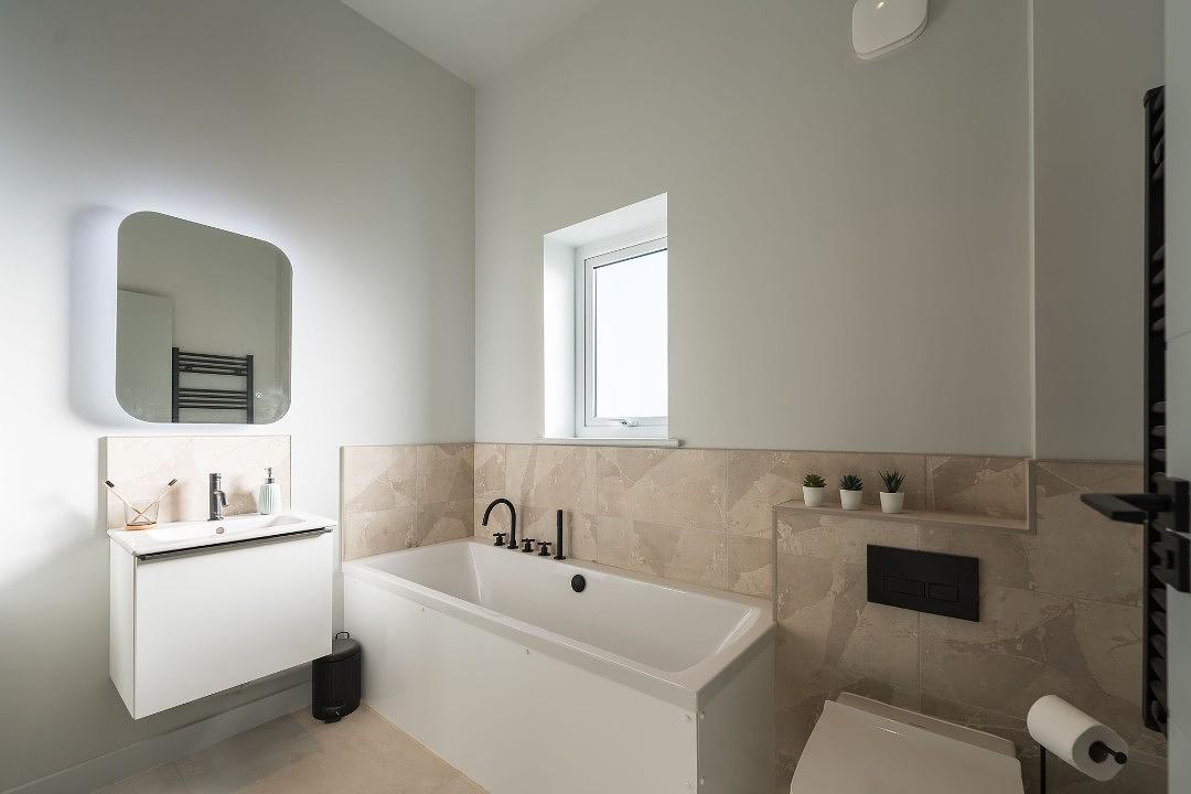 The apartment boasts all the modern facilities you’d expect, complemented by a small private garden and high ceilings that enhance its open living space design. Just steps from the heart of Bull Bay village, you’re within walking distance of the coastline, local pubs, and eateries, while still being ideally positioned to explore the rest of Anglesey.
