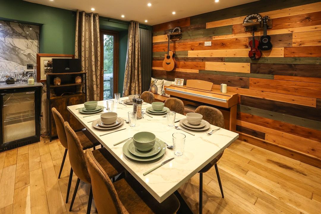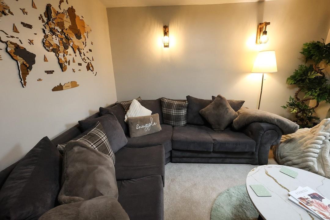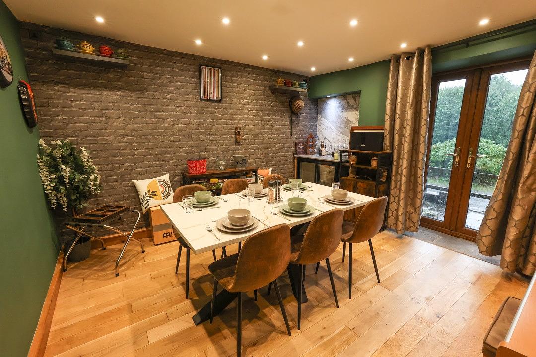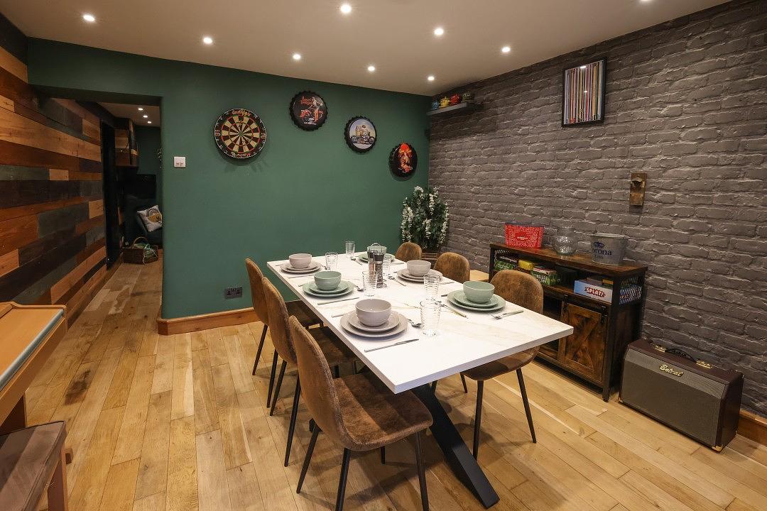 The kitchen at Britannia House is stylish and well-equipped, providing everything you’ll need for a comfortable stay. The space includes a convenient breakfast bar as well as a practical utility room. For shared meals, the cottage also offers a separate dining area, perfect for gathering together.