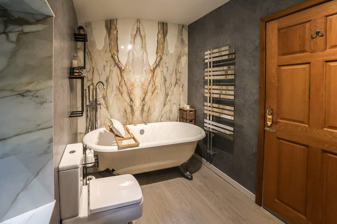 Britannia House offers three comfortable double bedrooms, all located on the first floor and each providing generous wardrobe space for your stay. The rooms share a stylish and spacious family bathroom, complete with a luxurious roll-top bath and a separate rainfall shower cubicle.