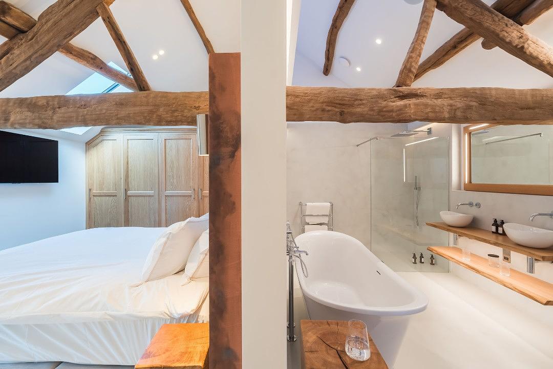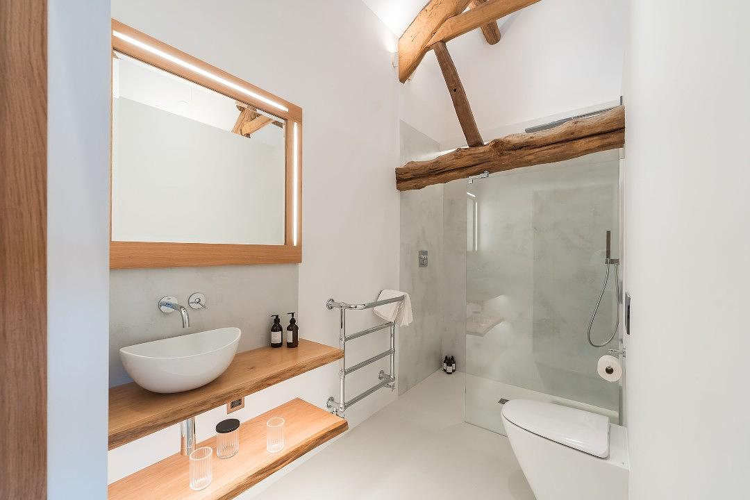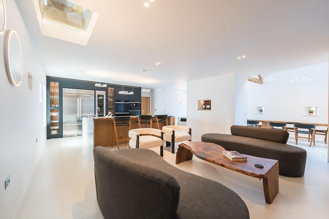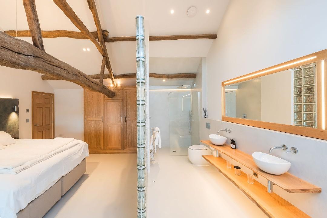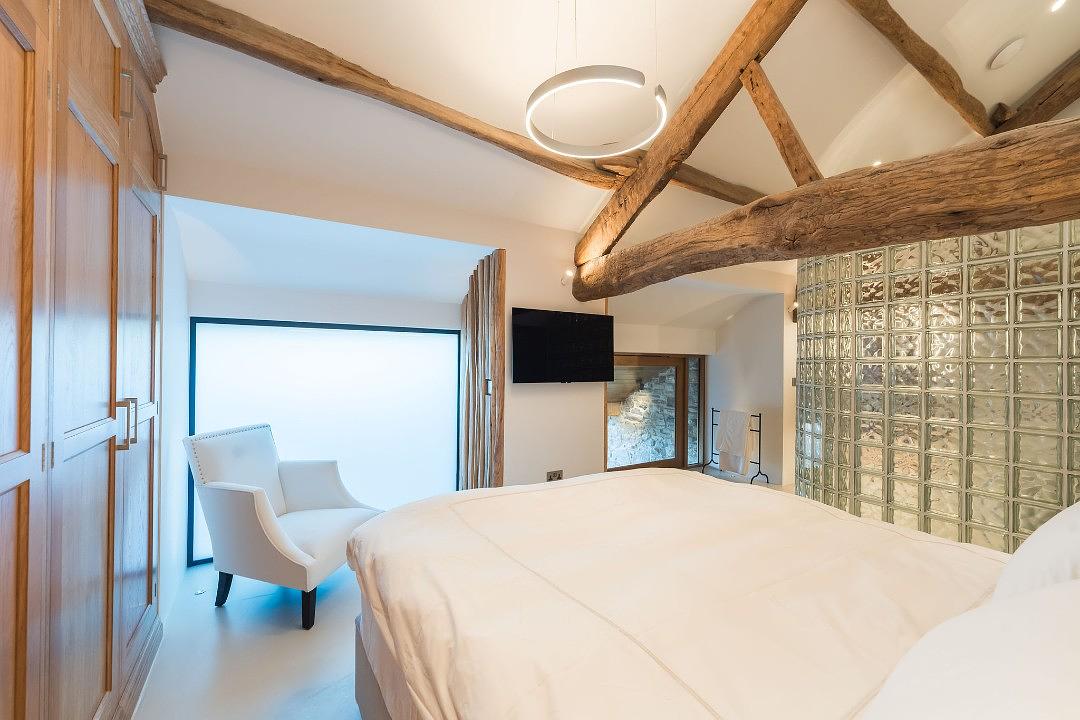 With wonderful large windows that flood the space with natural light, every room is designed to highlight the original beams and stone walls, creating a warm yet contemporary feel. Sleek, minimalist furnishings blend effortlessly with the barn’s traditional character, while the open-plan layout offers both comfort and style in equal measure.