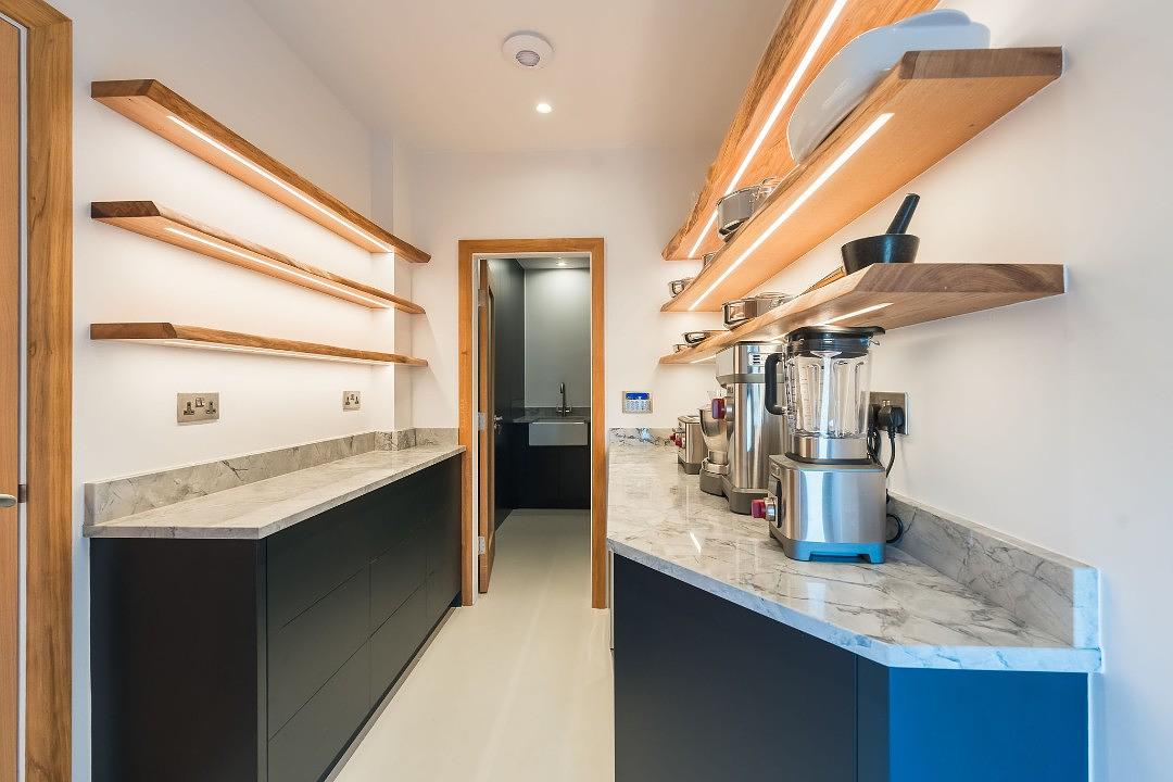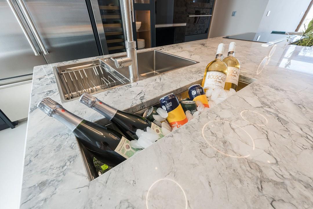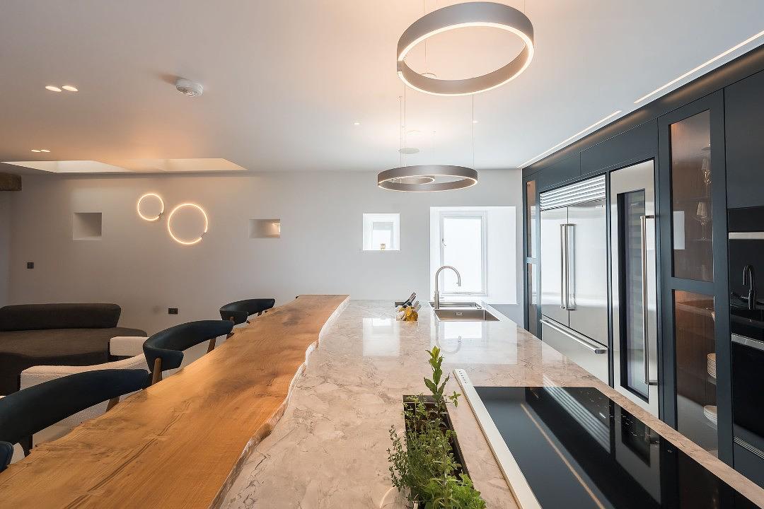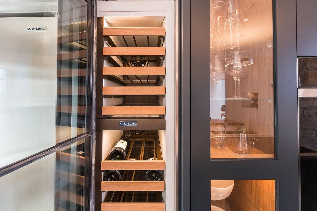 The Wolf kitchen is a dream for those who love to entertain, equipped with stylish drinks fridges and all the latest tech, including intuitive light switches that let you set the perfect mood.