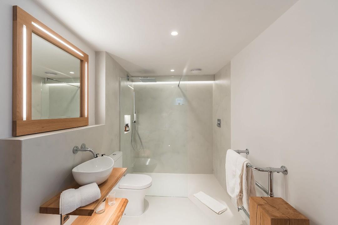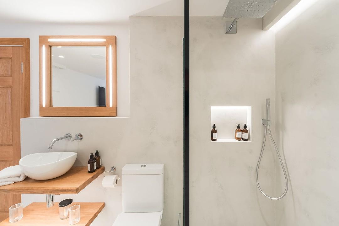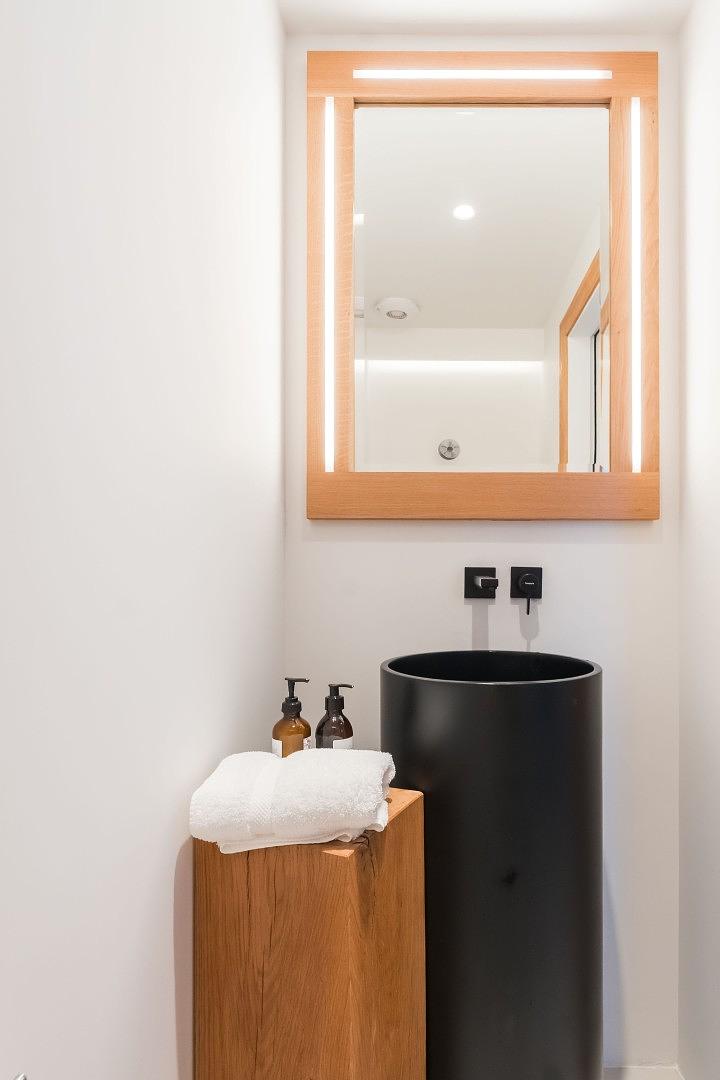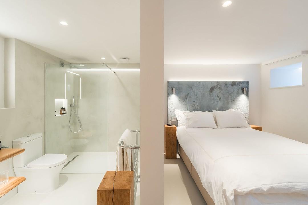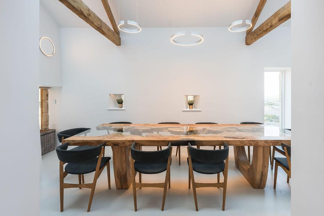 The spacious bedrooms feature incredible cement headboards and exposed beams, creating a warm and inviting ambiance. With ensuite bathrooms for every bedroom, comfort and privacy are assured for up to 10 + 2 guests , with additional beds available on request for 2 children.