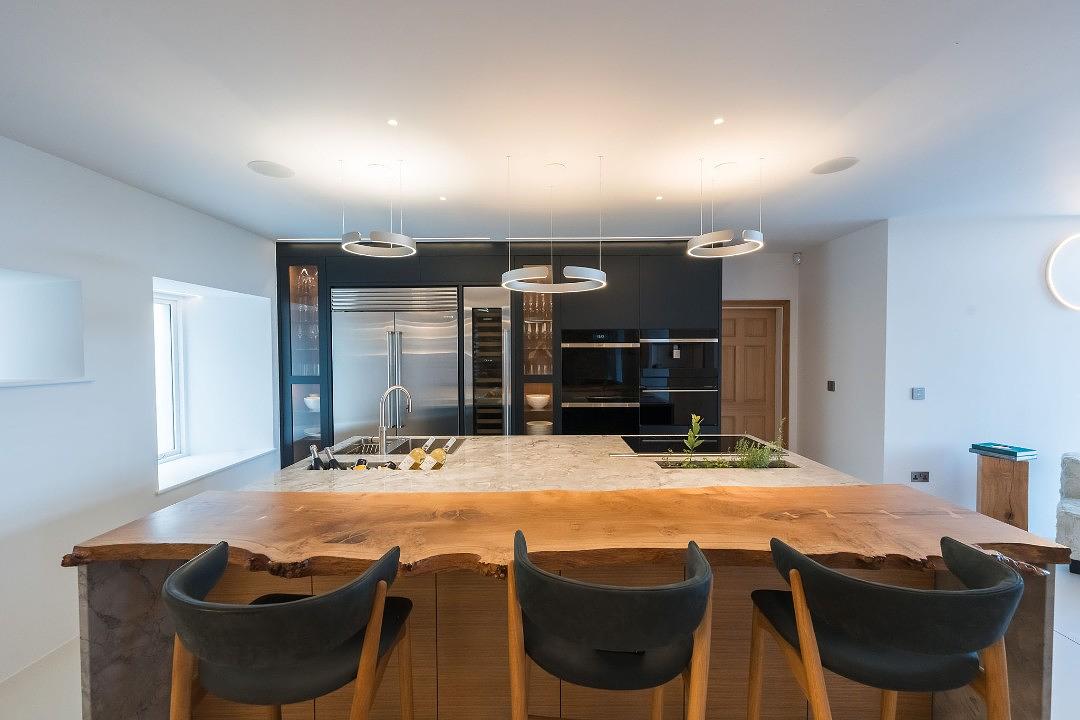 On the ground floor you have an ultra-modern dining area that can seat up to 12 as well as a lounge area that has sofas to relax on before extending through to the kitchen and breakfast bar area.
