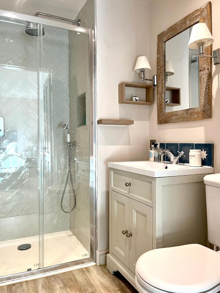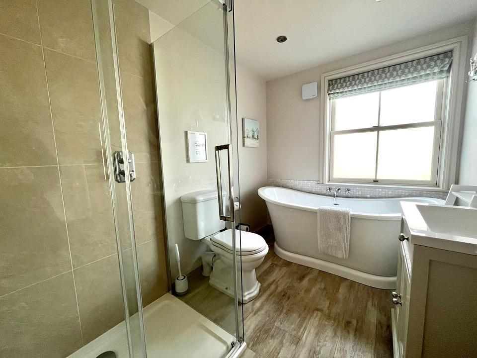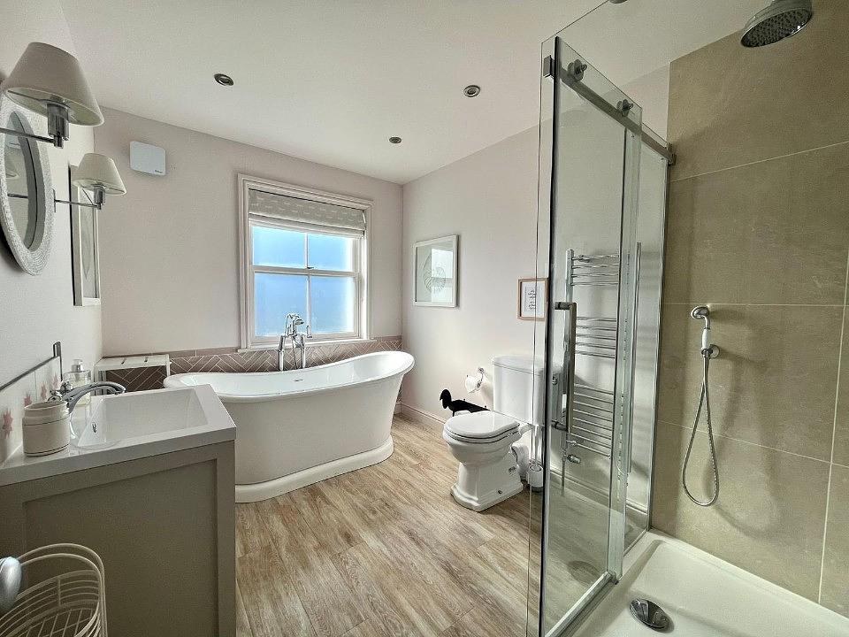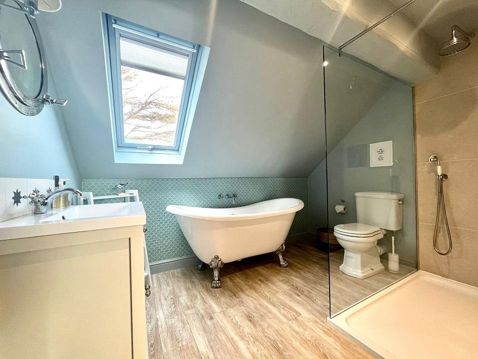 Ground floor family bathroom next to the bunk bedroom with bath and separate shower