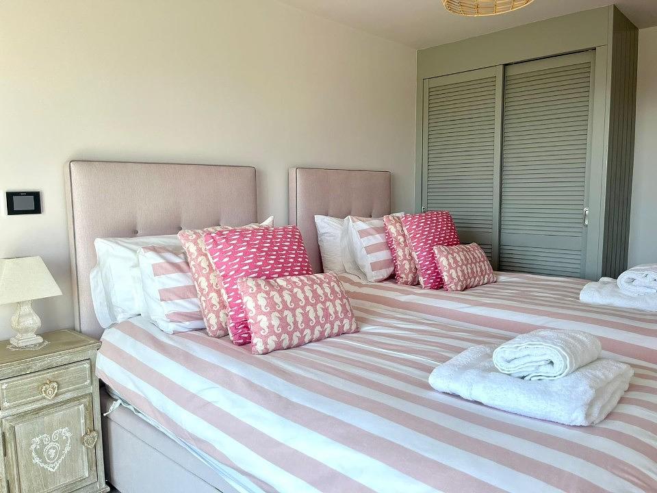 Bedroom 5 - large super king bed (zip and link) with patio doors to outside and ensuite with shower