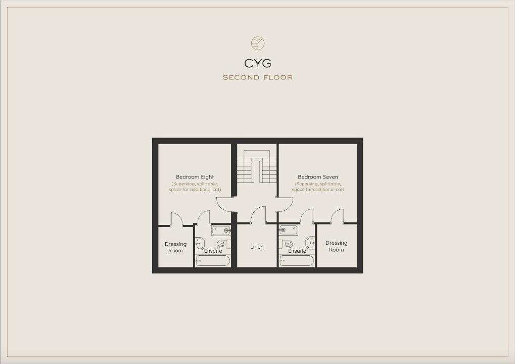 Bedroom 8 - 1 super king bed (zip and link) with ensuite shower room with bath and dressing room