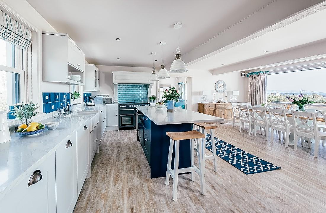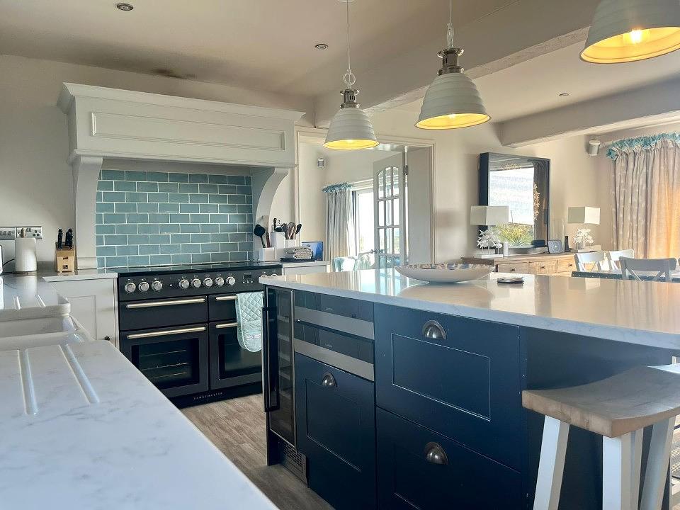 Fully equipped modern kitchen with a Rangemaster oven, boiling water tap, Insinkerator, Magimix, two dishwashers and wine fridge