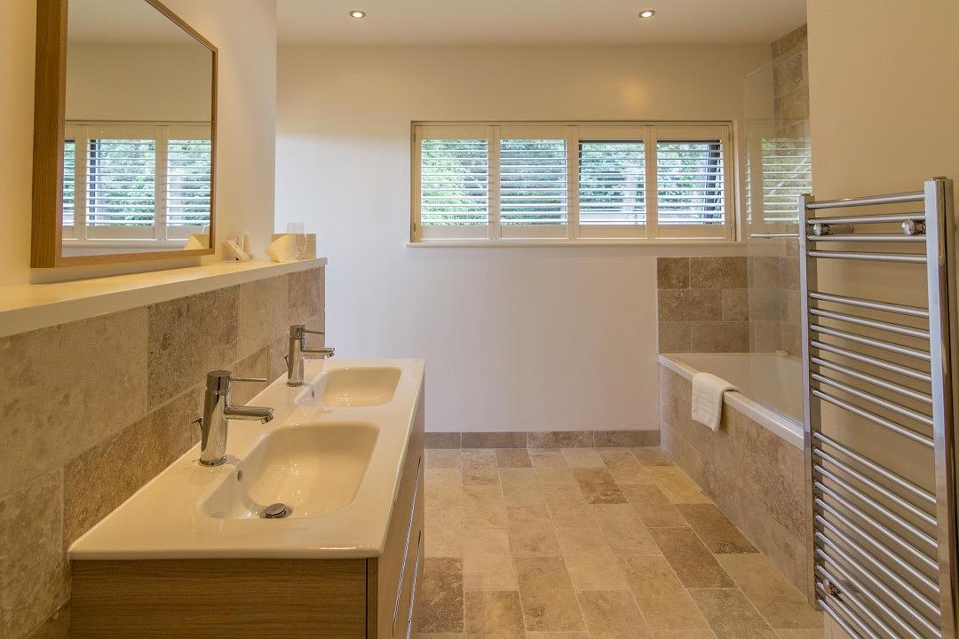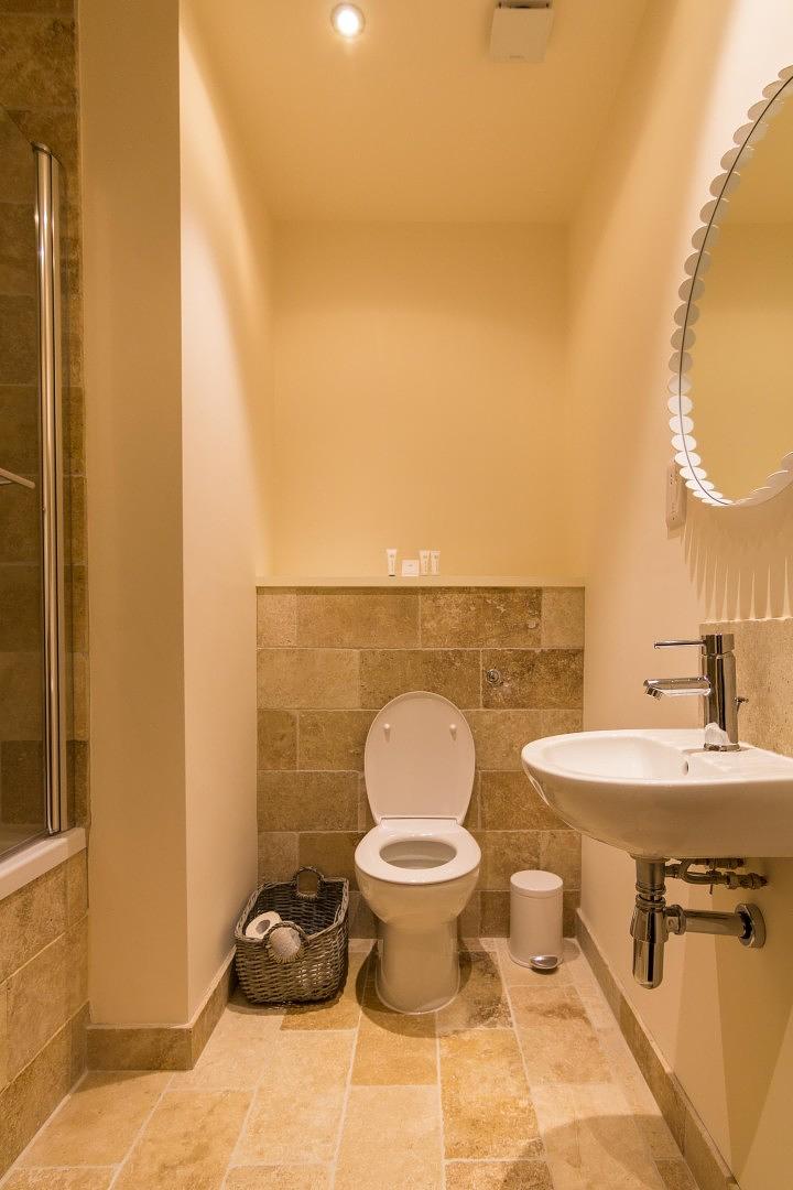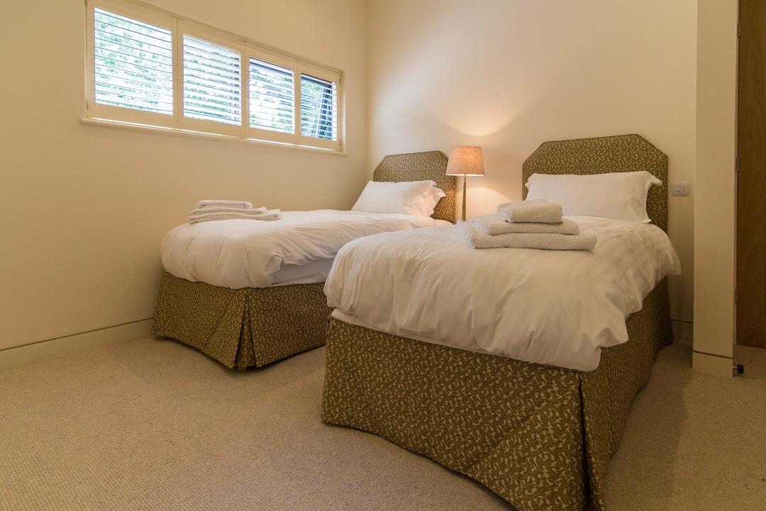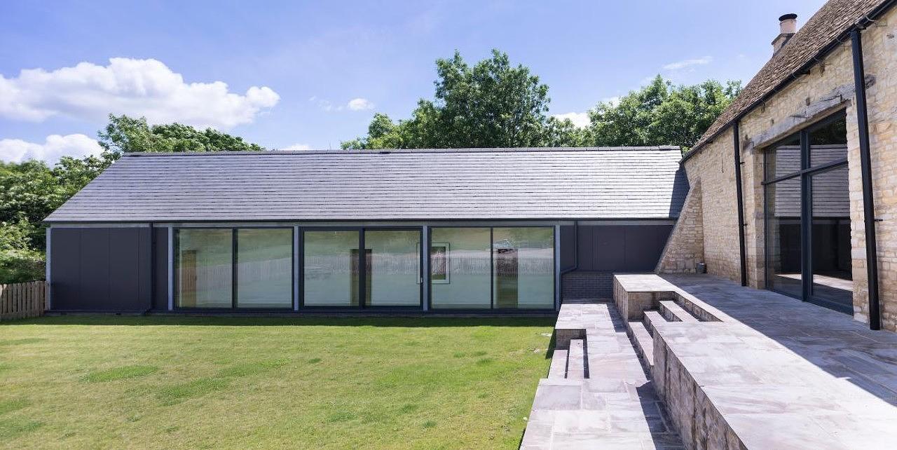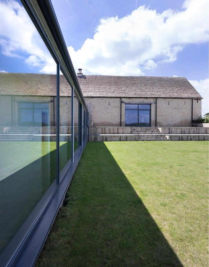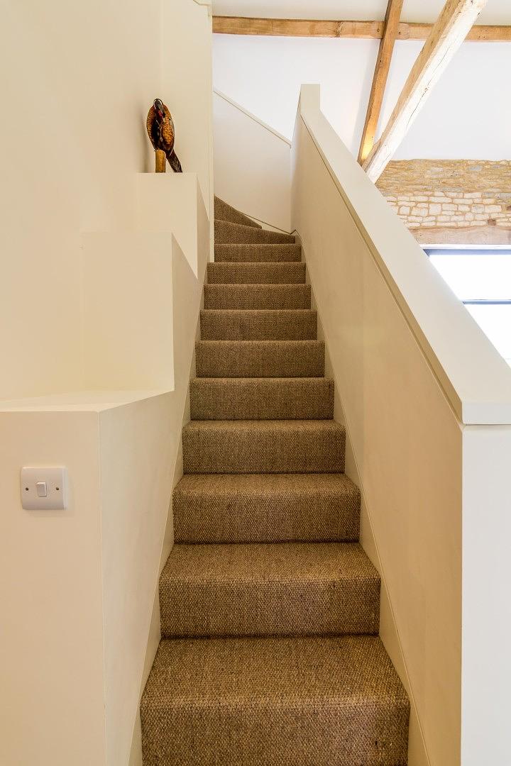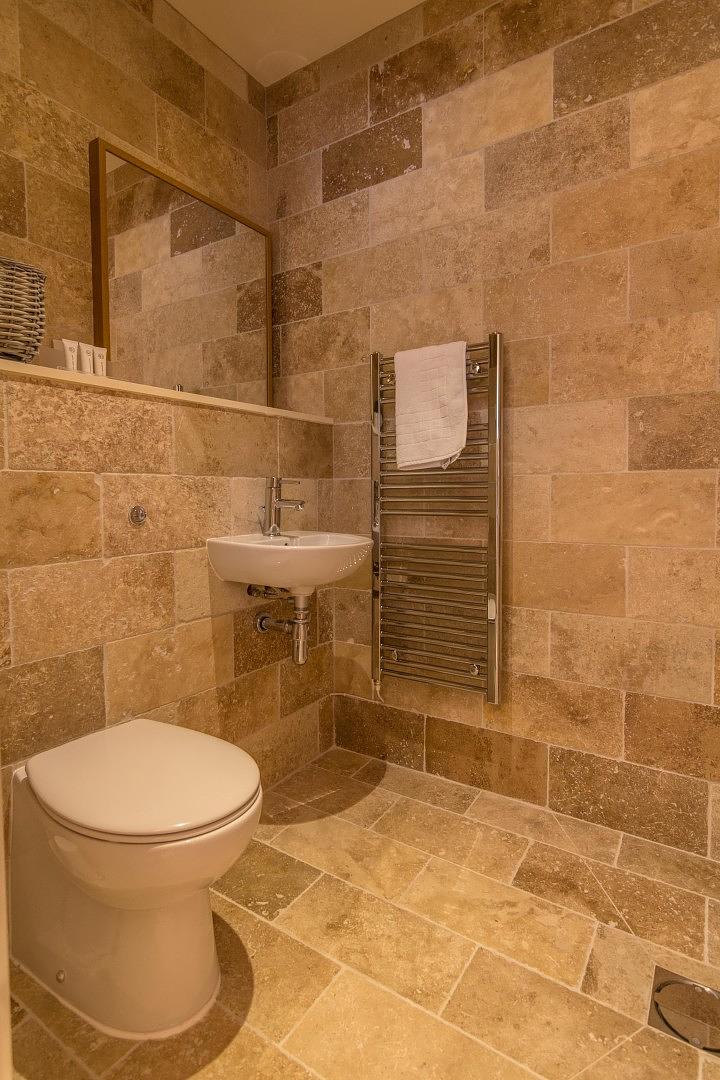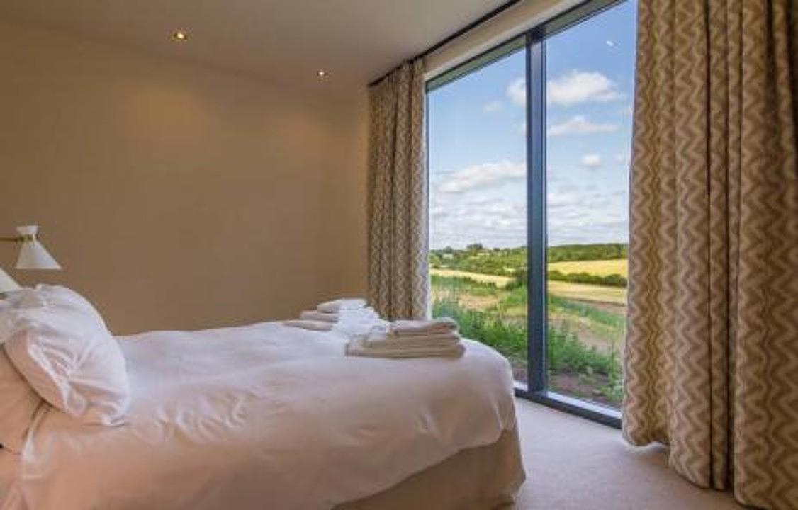 Accessed via a short flight of stairs in the modern wing, the barn includes four spacious bedrooms. These include a luxurious master suite with floor-to-ceiling windows that frame breathtaking views of the surrounding countryside. Each bedroom has been thoughtfully designed for comfort and tranquillity, perfect for winding down after a day exploring the Cotswolds.