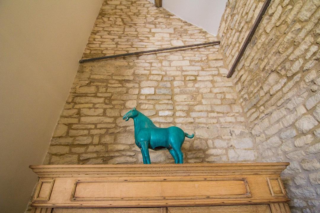 The true WOW factor lies in the barn’s impressive open-plan lounge and dining area. Framed by striking stone walls, vaulted ceilings, and exposed wooden beams, the space features a magnificent open fireplace and underfloor heating for year-round comfort. Floor-to-ceiling glass doors flood the area with natural light and open onto a generous patio, creating seamless indoor-outdoor living.