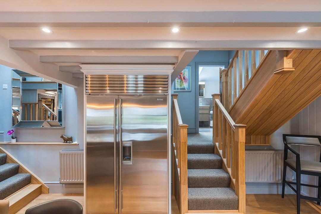 The kitchen also houses a substantial Sub-Zero fridge freezer equipped with a water purifier and ice machine, alongside a dedicated Sub-Zero wine cooler, perfect for a variety of wines and champagnes. For coffee enthusiasts, a Sage Nespresso Vertuo coffee machine, we provide a small number of coffee pods but recommend bringing your own. Two cafetières are also thoughtfully provided to satisfy your coffee cravings!