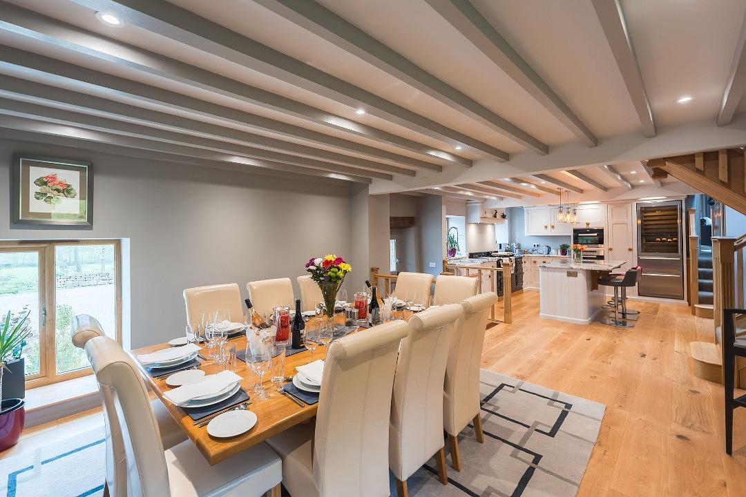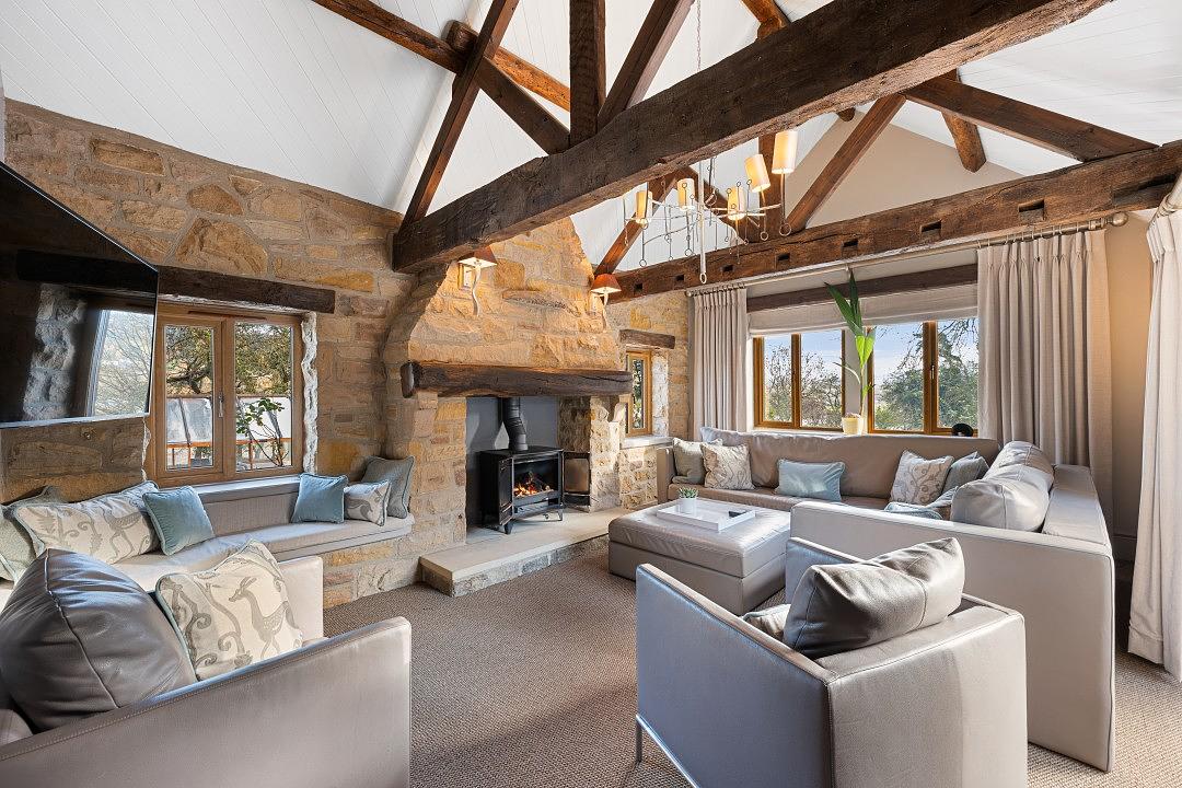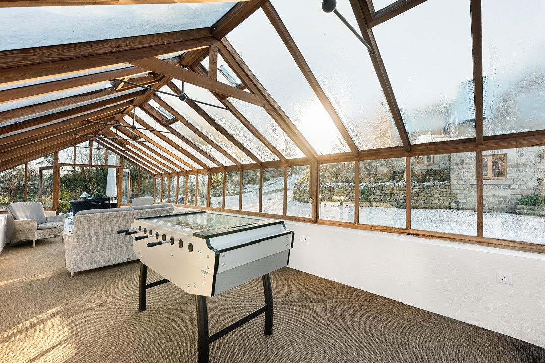This farmhouse retreat is the perfect location to relax and socialise with friends and family, with the home boasting, a games lounge with pool table, separate cosy snug, an outdoor summer house with a foosball table, and beautifully mature gardens to explore.