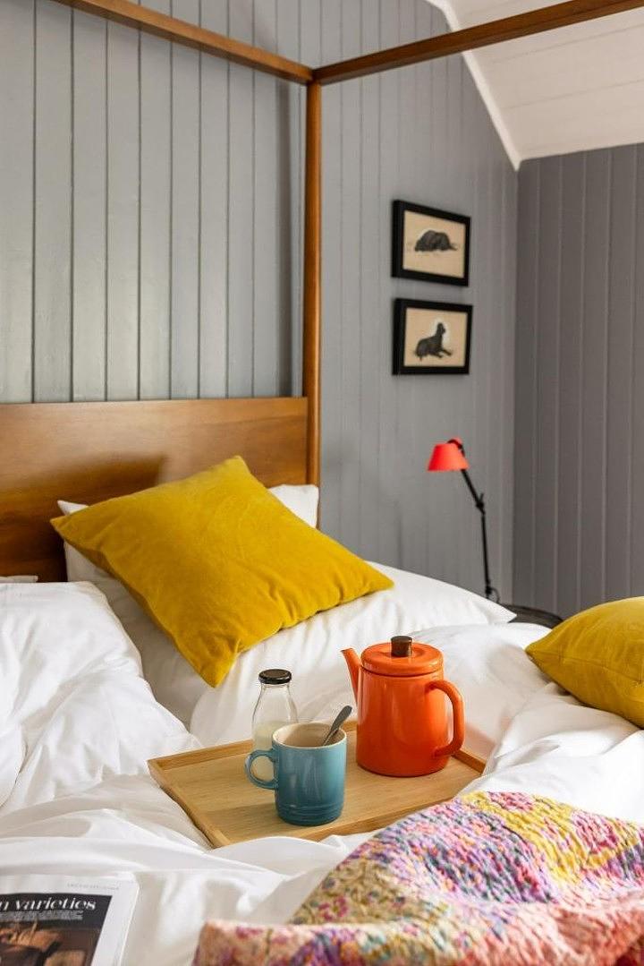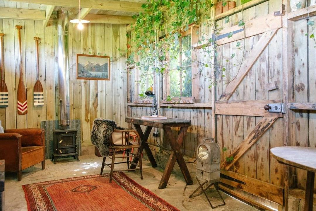 Cailleach’s Croft features a spacious kitchen, dining room, and a cosy sitting room perfect for relaxing. There’s also an upstairs family bathroom and a downstairs loo. A large outbuilding has been converted into a creative studio and hangout space, complete with a wood burner for added comfort.
