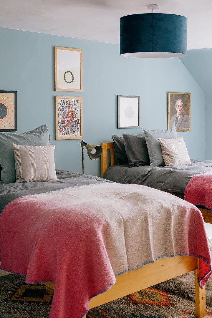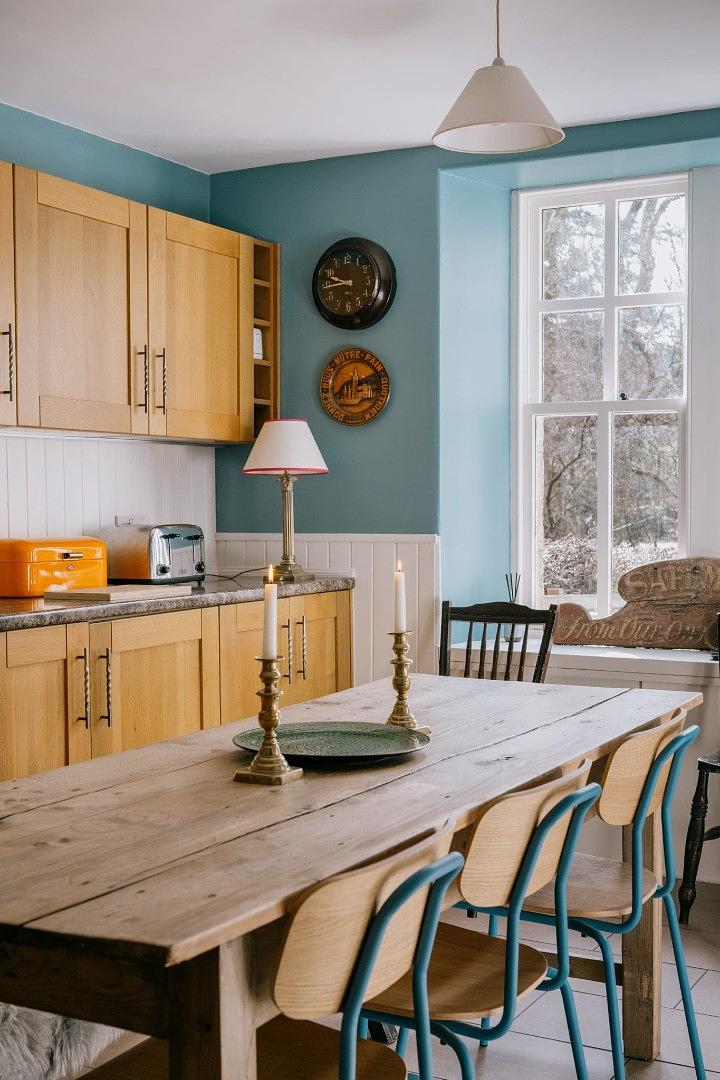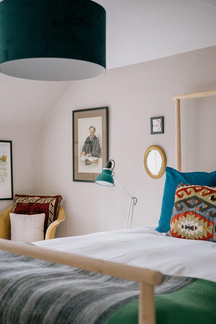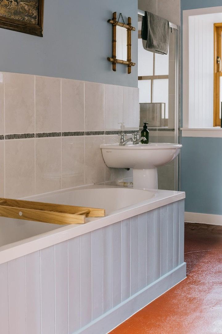 This simple yet beautifully located house features a sitting room, a modest but functional kitchen, one bathroom, and a separate loo. Though more pared-back than other Wild Glen's properties, the interiors are tastefully styled with a thoughtful mix of modern, vintage, and antique furniture, complemented by well-sourced homewares and art. The kitchen and bathroom are clean and fresh, designed for practicality and comfort after long days outdoors. Guests also have access to the estate pub with a log fire and record player, and Garden Camp—an indoor-outdoor recreation space with classic games and a cosy wood-burning stove.