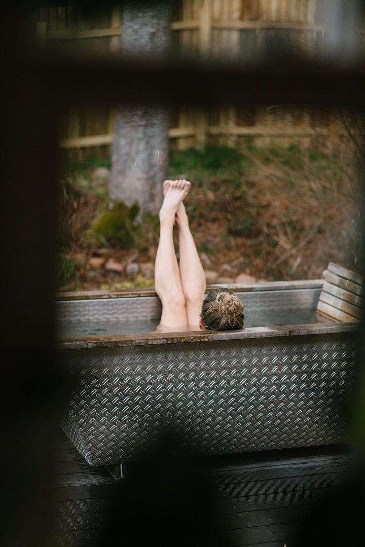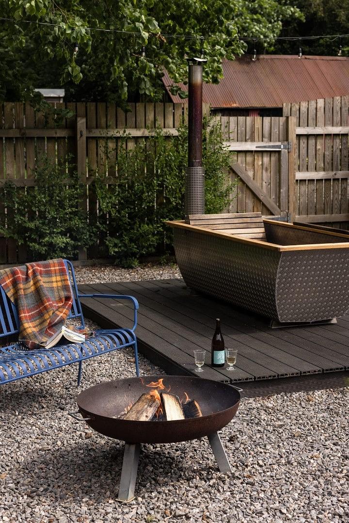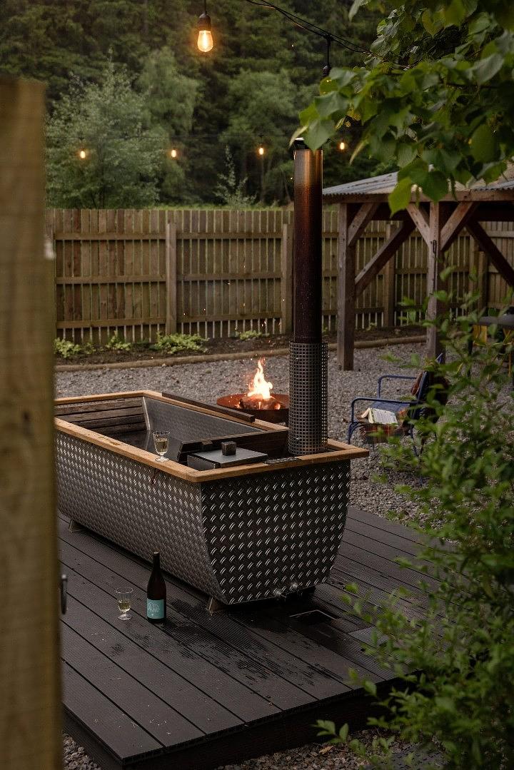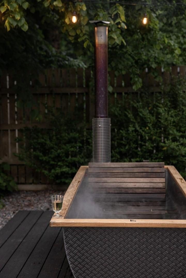 Wood fired outdoor hot tub