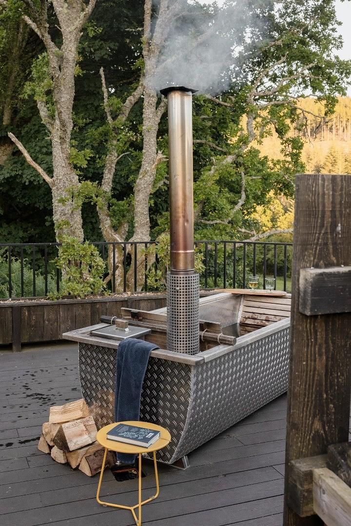 Outdoors, guests can relax in their own private wood-fired hot tub and enjoy access to Wild Glen Retreats wider amenities. These include the estates own pub, with a log fire and record player, and Garden Camp with classic games and a cosy indoor space. You’re welcome to collect seasonal vegetables and fresh eggs, browse the well-stocked General Stores, or book a private session at the woodland sauna, complete with a cold shower and dip tanks for a refreshing finish.