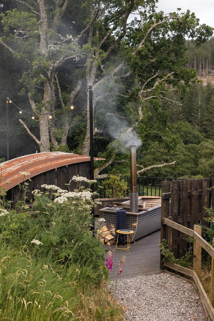 Tigh an Fheòir, once a working hay store, has been thoughtfully transformed into a cosy and characterful retreat. It features two double bedrooms, a spacious sitting and dining area, a fully equipped kitchen, and two bathrooms. The large picture window, once used for passing hay, now floods the space with natural light and countryside views. Outside, you'll find a private wood-fired hot tub and access to estate shared amenities.
