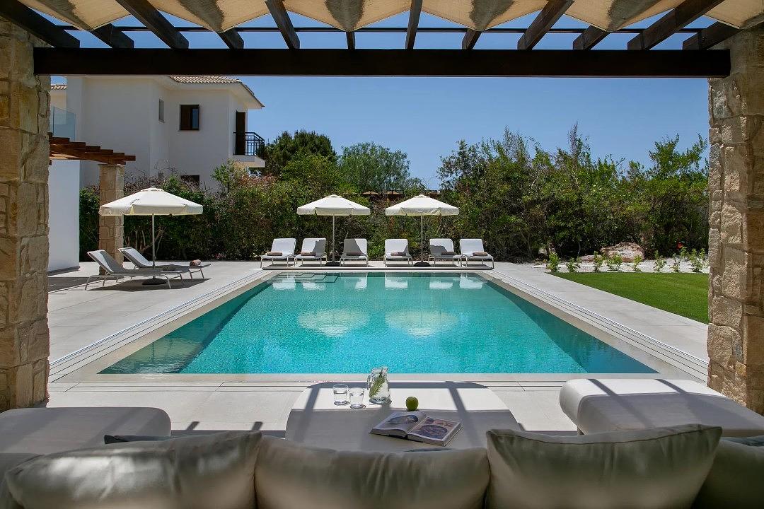 A luxurious six-bedroom villa with stunning sea views and a private pool in Aphrodite Hills Resort.