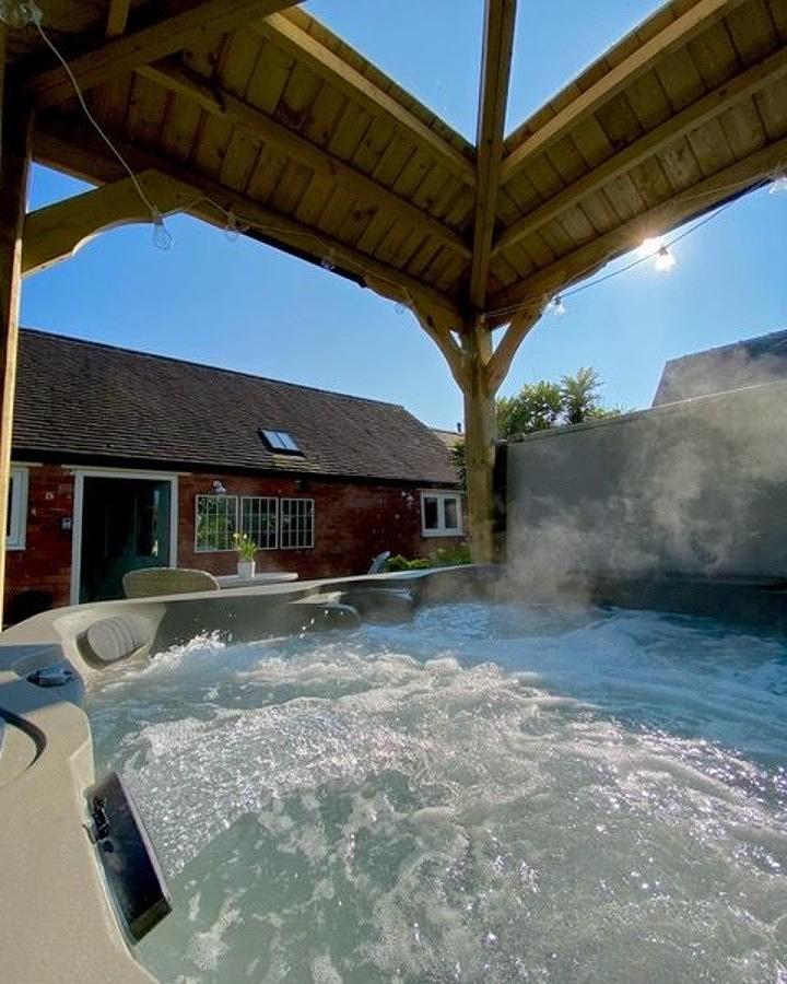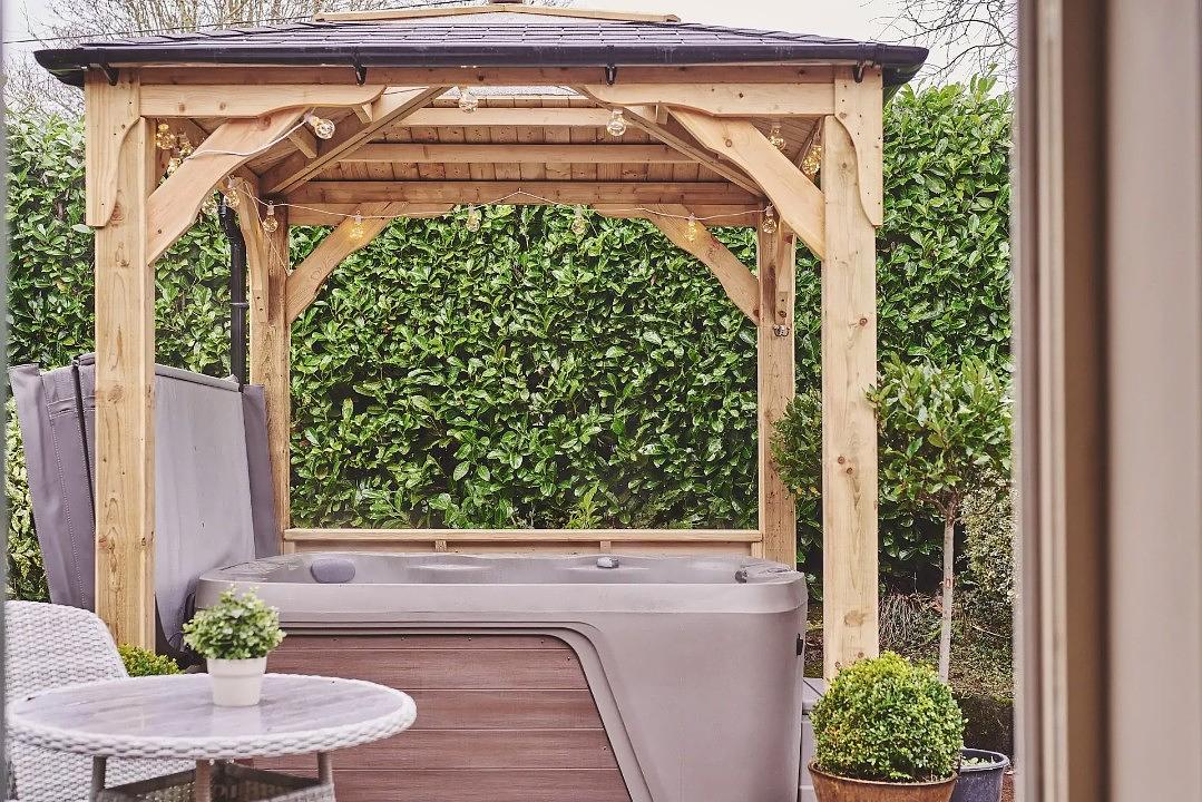 One of the standout highlights is the delightful private garden, where a hot tub awaits. Its partially transparent roof floods the space with natural daylight, creating a light and welcoming atmosphere during the day. By night, it transforms into a magical spot where you can soak and unwind under the stars, making it an idyllic setting for relaxation and romance.