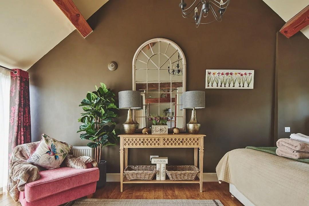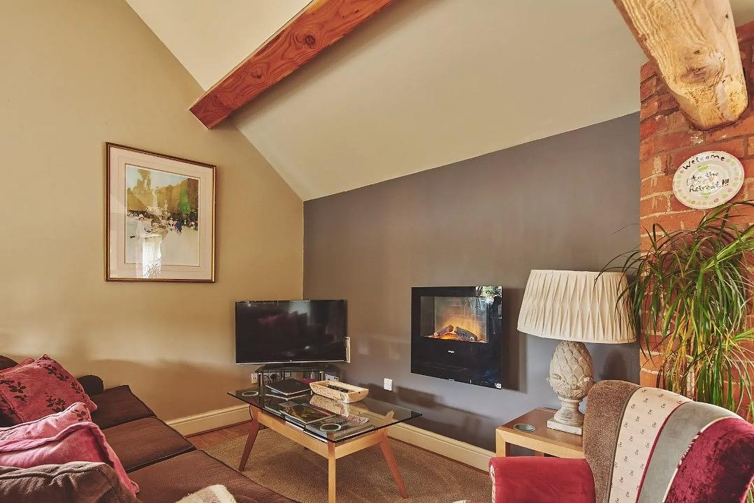 With beautiful wood-panelled flooring and an open-plan layout throughout the ground floor, The Retreat feels spacious, bright, and wonderfully airy. The living room and kitchen are thoughtfully designed and equipped with top-of-the-line furnishings, blending modern comfort with rustic character. This charming barn conversion offers a perfect sanctuary for couples seeking a peaceful getaway, featuring a romantic king-sized bed designed for restful nights.