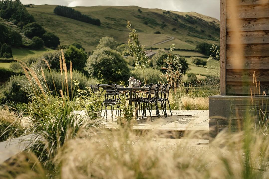 Five design-led bedrooms, an open-plan living area, and a fully equipped kitchen support productive group stays, whether you're hosting a retreat or gathering loved ones. Outside, a gravel garden and stone terrace extend the space for everything from outdoor meetings and workshops to relaxed family meals, celebrations, or simply unwinding together in rural Mid Wales.