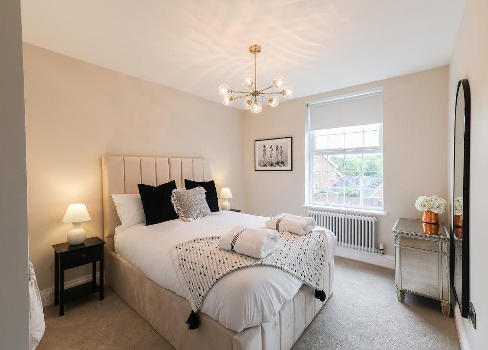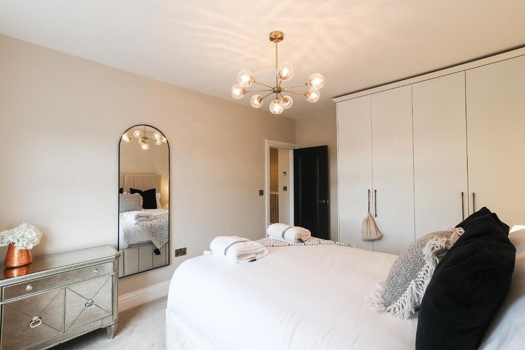 The Oak Dene is a beautifully designed retreat in High Lane, Greater Manchester that blends sophisticated style with everyday comfort. Finished to an exceptional standard, the home features sleek black-trimmed doorways, plush white linens, and a calm neutral palette that creates a sense of modern elegance from the moment you walk in.