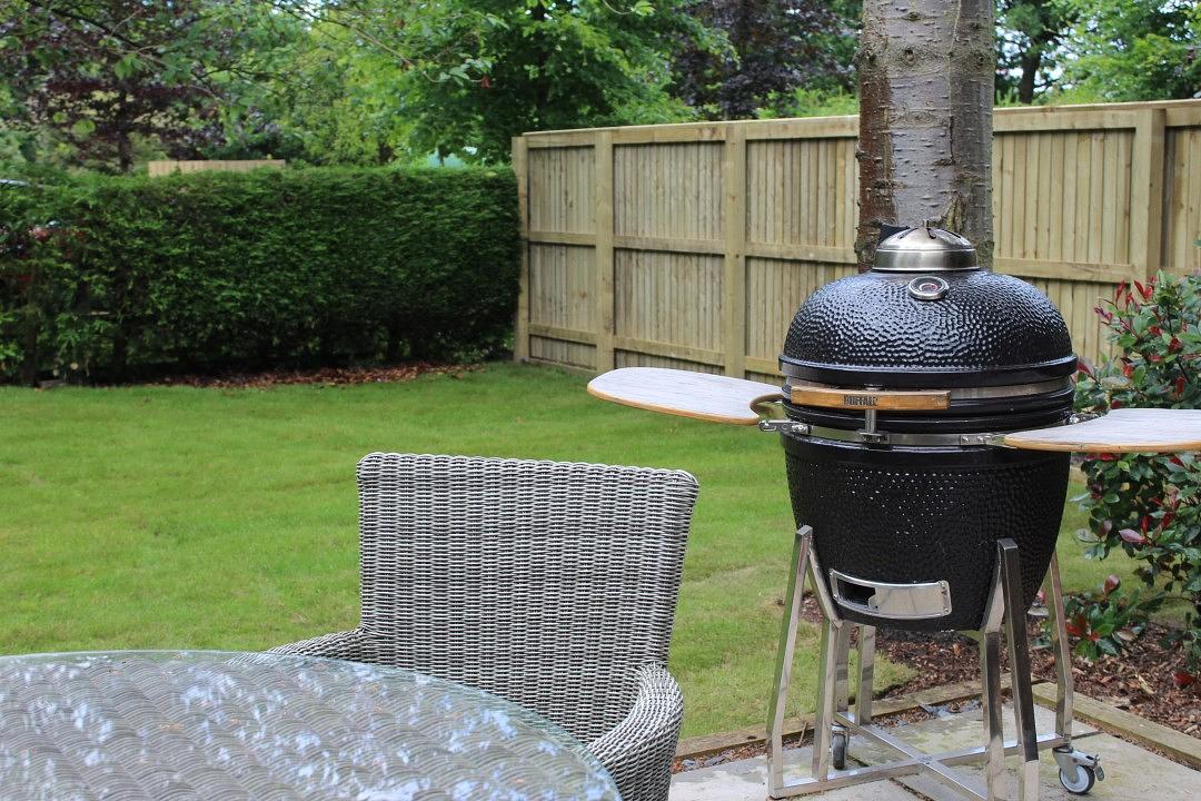 Step outside onto the private terrace, where your inviting hot tub awaits, perfectly maintained at the ideal temperature for a soothing soak in any season. During warmer days, enjoy alfresco dining at the outdoor table and chairs or make the most of the ceramic egg-style BBQ for a relaxed outdoor feast surrounded by nature.