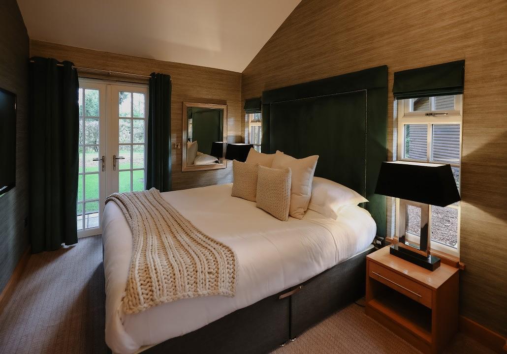 The Grand Fir boasts a luxurious master super king bedroom, complete with an elegant oversized headboard and a private ensuite featuring a bath with shower over, complimentary toiletries, and soft white towels for a touch of indulgence. Two additional bedrooms, one double and one twin, share a stylish Jack and Jill shower room, beautifully appointed with a spacious double walk-in shower for added comfort and convenience.