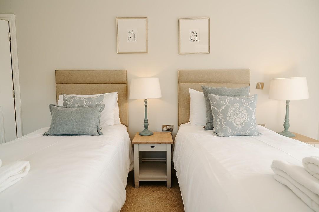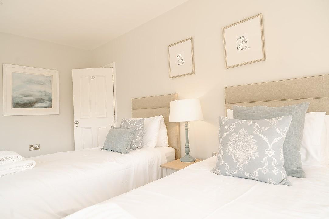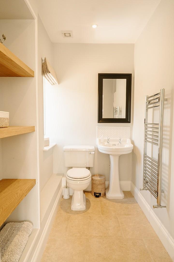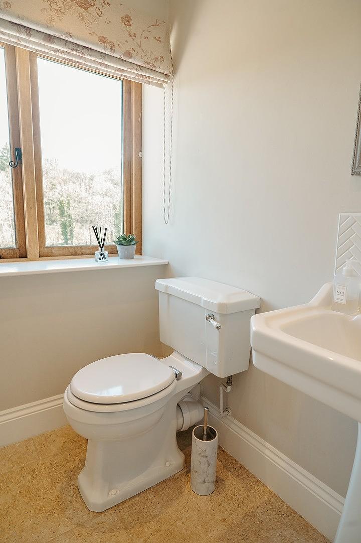 This luxurious cottage offers four beautifully appointed bedrooms, each designed to provide a restful retreat. The super-king-size bedroom includes an en-suite bathroom, complete with a shower over the bath and a WC. The second king-size bedroom also features an en-suite shower room and WC. A third king-size bedroom is conveniently located next to a bathroom with a shower over the bath, making it a great option for guests who prefer a shared bathroom. The final bedroom is a twin zip-and-link room, which can be converted into a super-king-size on request. This room also includes its own en-suite shower room with a WC. The bathrooms are elegantly designed with luxurious features such as rainfall showers, heated towel rails, and modern fixtures, and there is an additional downstairs WC for added convenience.
