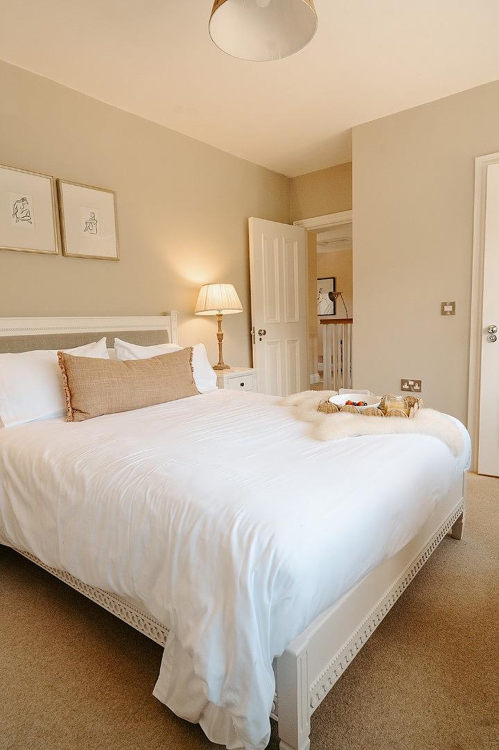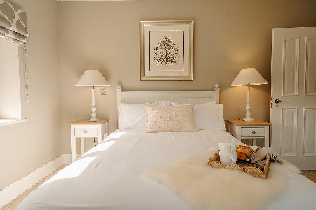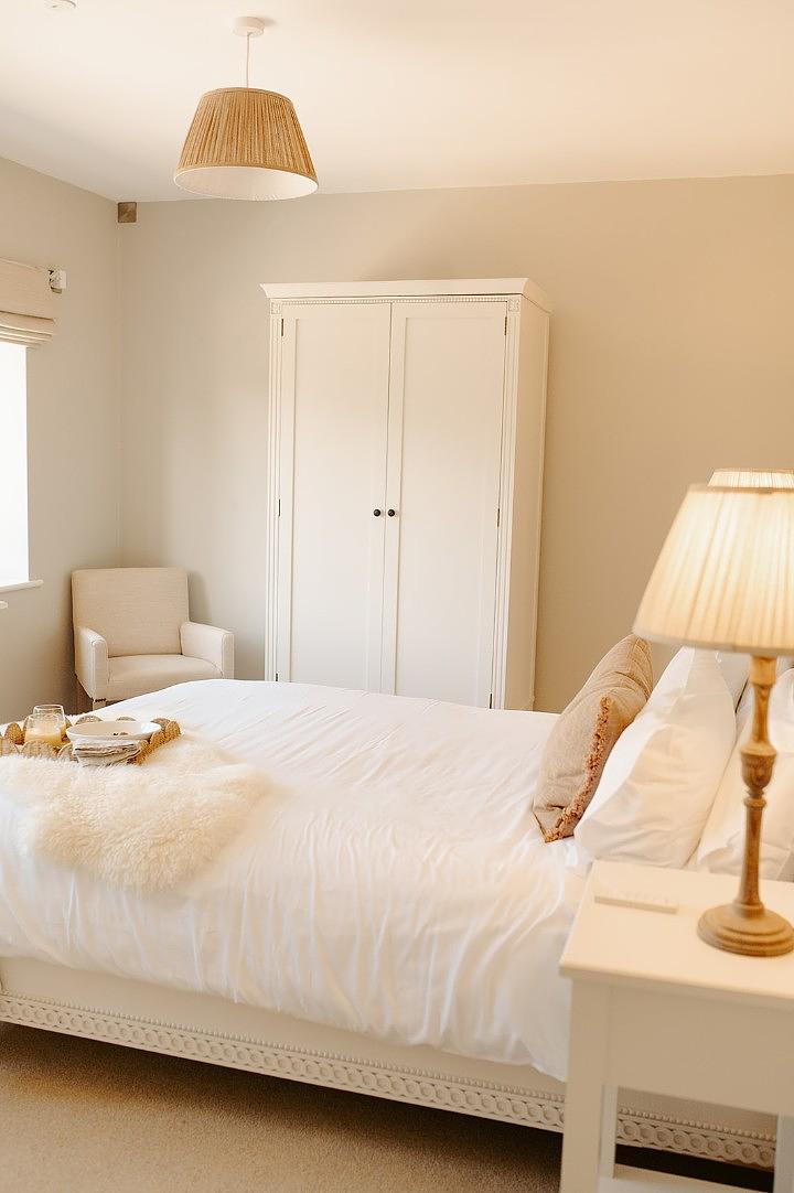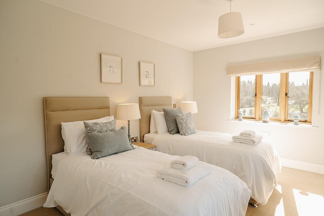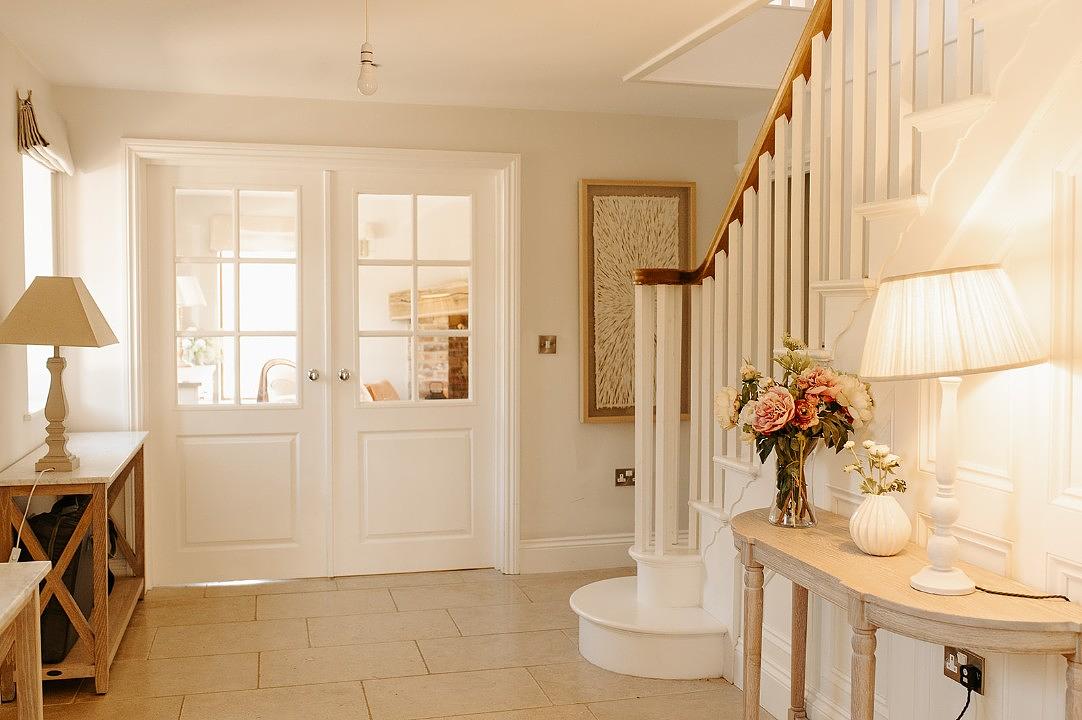 This luxurious cottage offers four beautifully appointed bedrooms, each designed to provide a restful retreat. The super-king-size bedroom includes an en-suite bathroom, complete with a shower over the bath and a WC. The second king-size bedroom also features an en-suite shower room and WC. A third king-size bedroom is conveniently located next to a bathroom with a shower over the bath, making it a great option for guests who prefer a shared bathroom. The final bedroom is a twin zip-and-link room, which can be converted into a super-king-size on request. This room also includes its own en-suite shower room with a WC. The bathrooms are elegantly designed with luxurious features such as rainfall showers, heated towel rails, and modern fixtures, and there is an additional downstairs WC for added convenience.