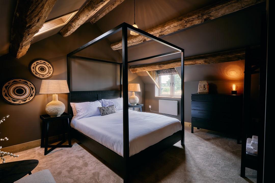 Upstairs, Landlords Cottage offers two beautifully appointed king-size bedrooms, each with its own character. One features a striking four-poster bed, perfect for a touch of luxury, while the other is light and spacious with charming countryside touches. On the ground floor, a third double bedroom provides flexible accommodation, ideal for guests who prefer fewer stairs.