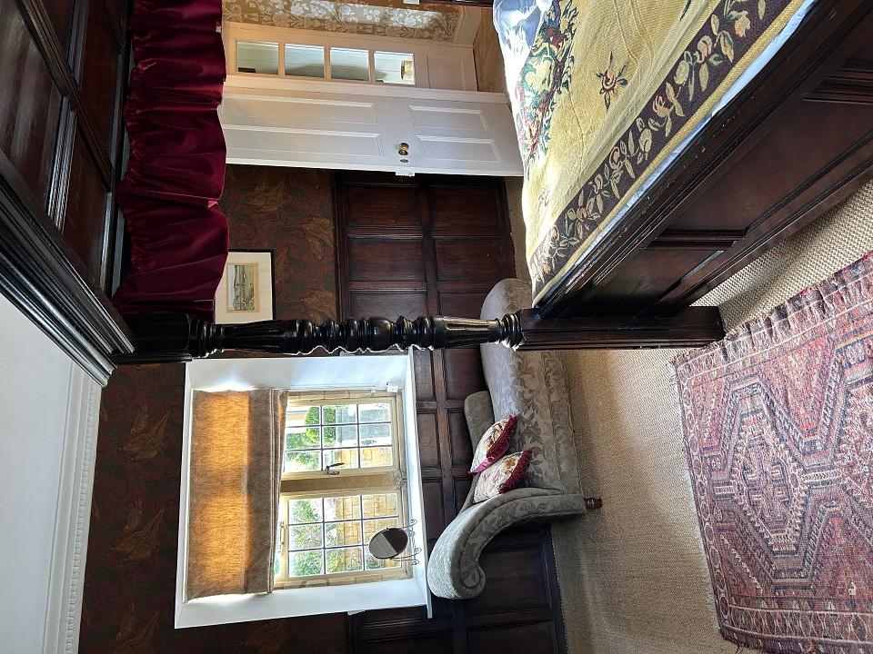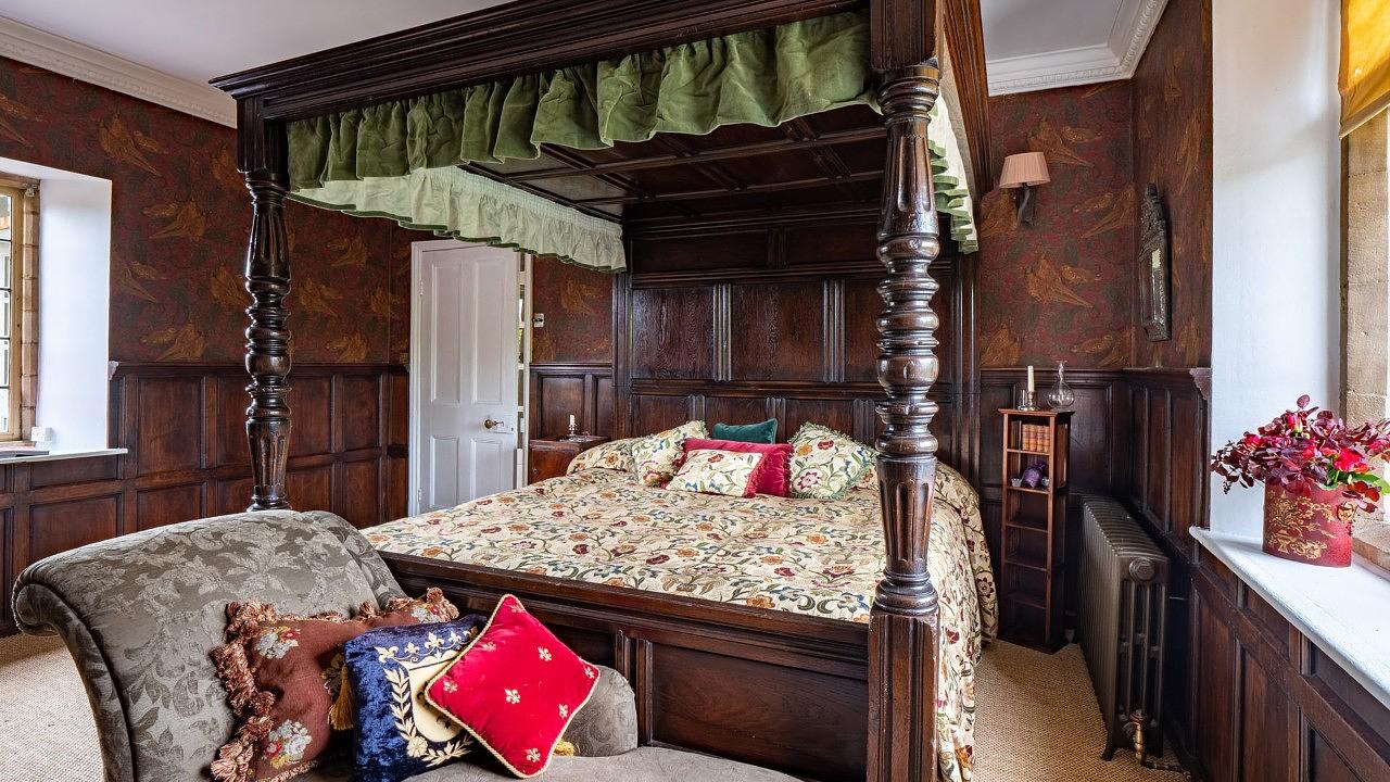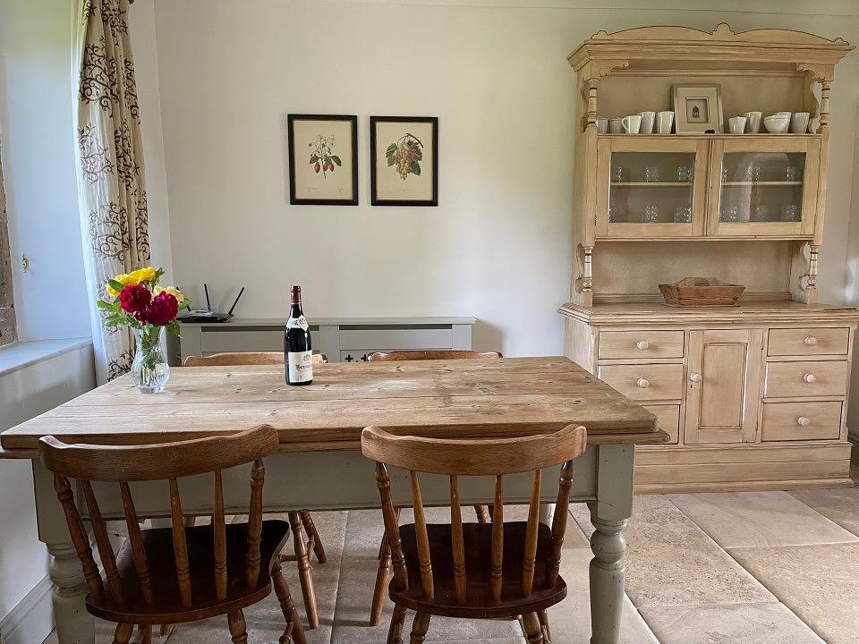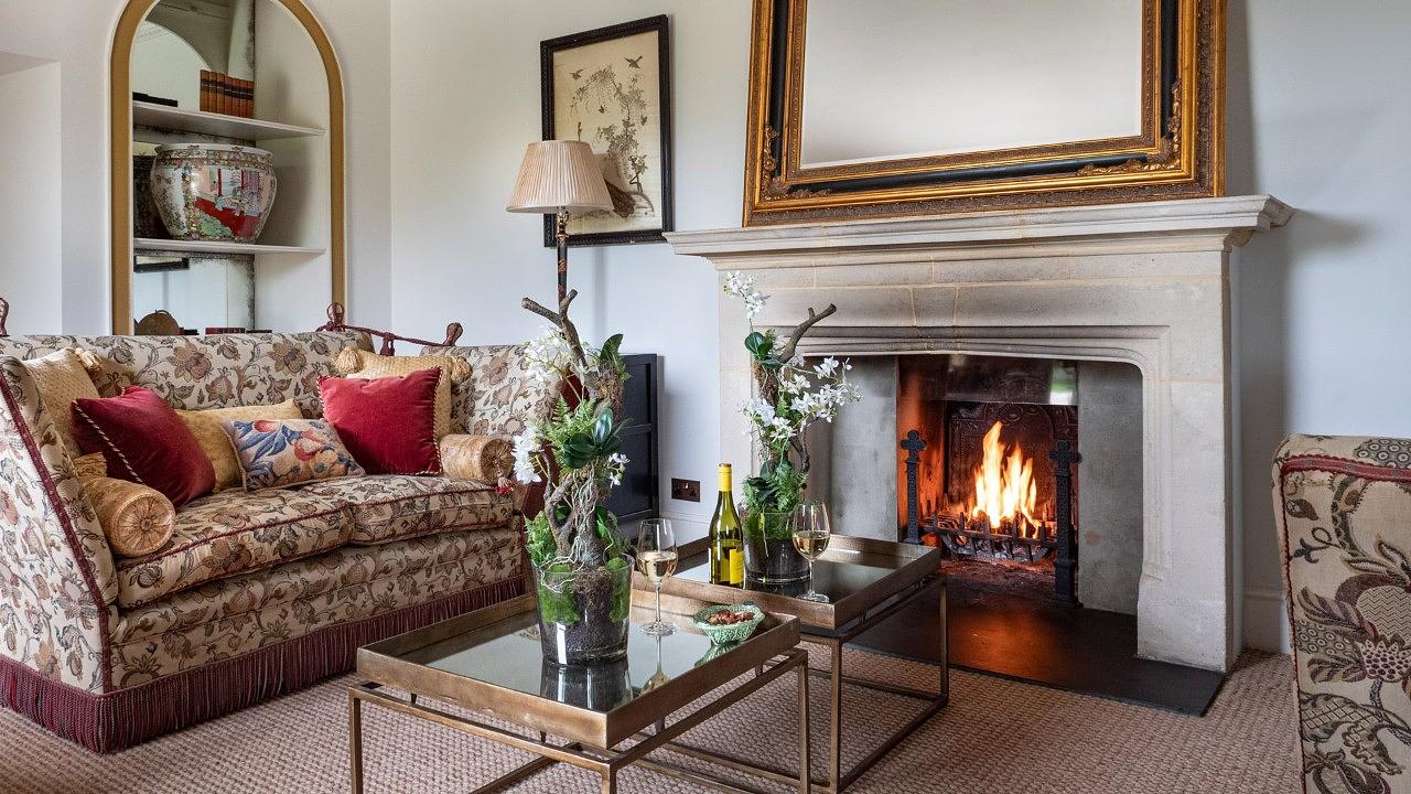 Across the courtyard, Laverton Cottage boasts two more bedrooms, a kitchen, breakfast room, and a cosy living room with an open fire.