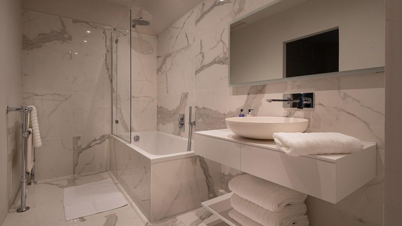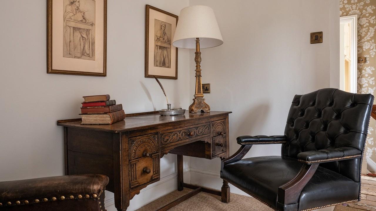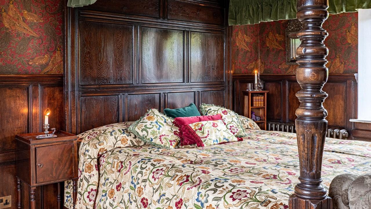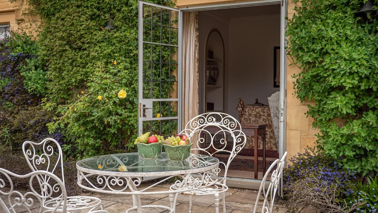 Across the courtyard, Laverton Cottage boasts two more bedrooms, a kitchen, breakfast room, and a cosy living room with an open fire.