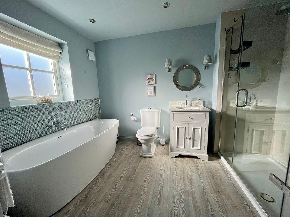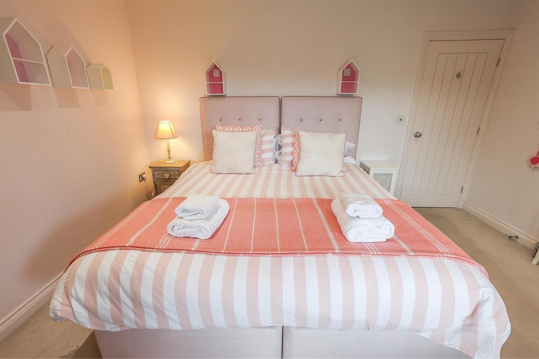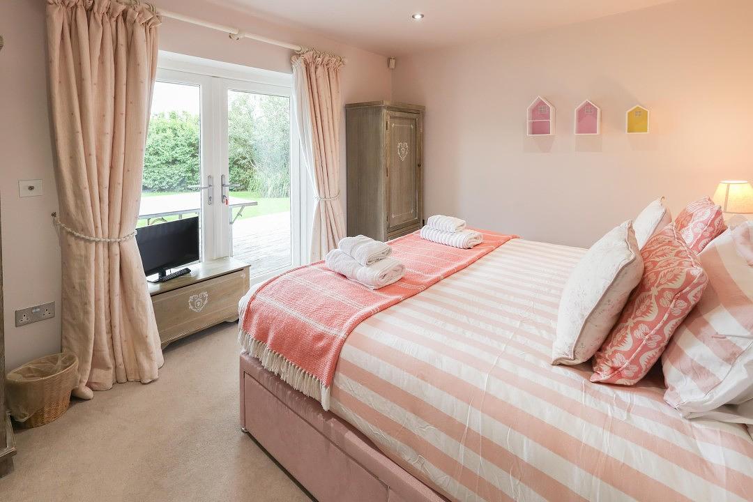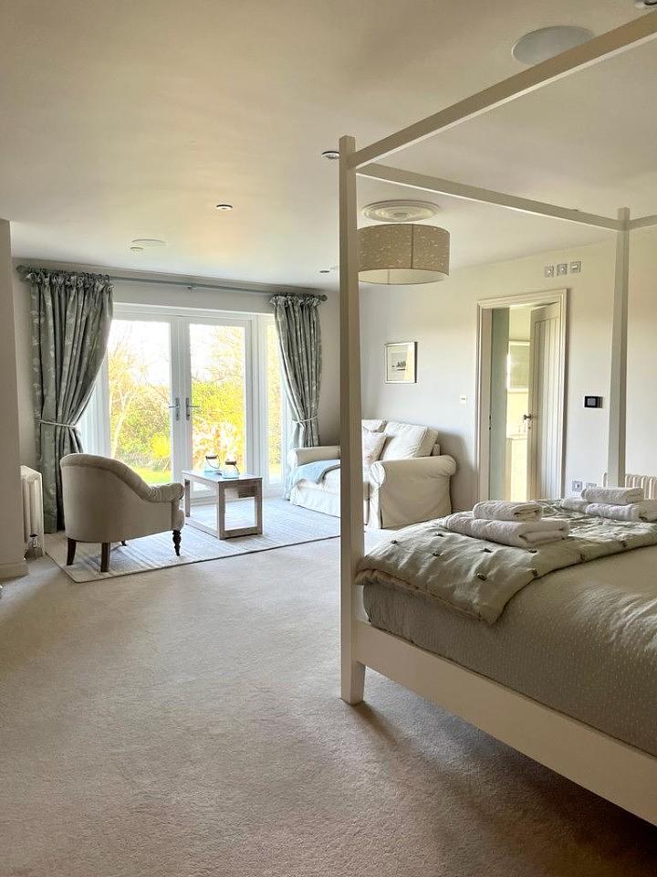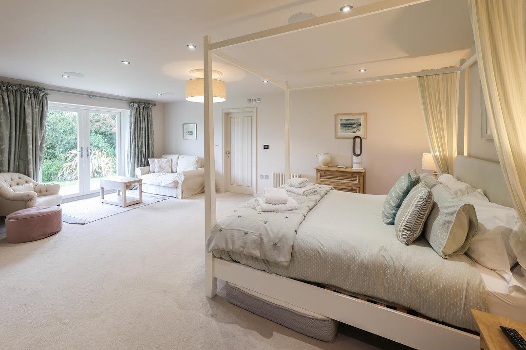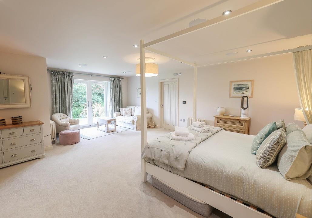 Bedroom 4: Large super king bed with patio door to outside and ensuite with shower