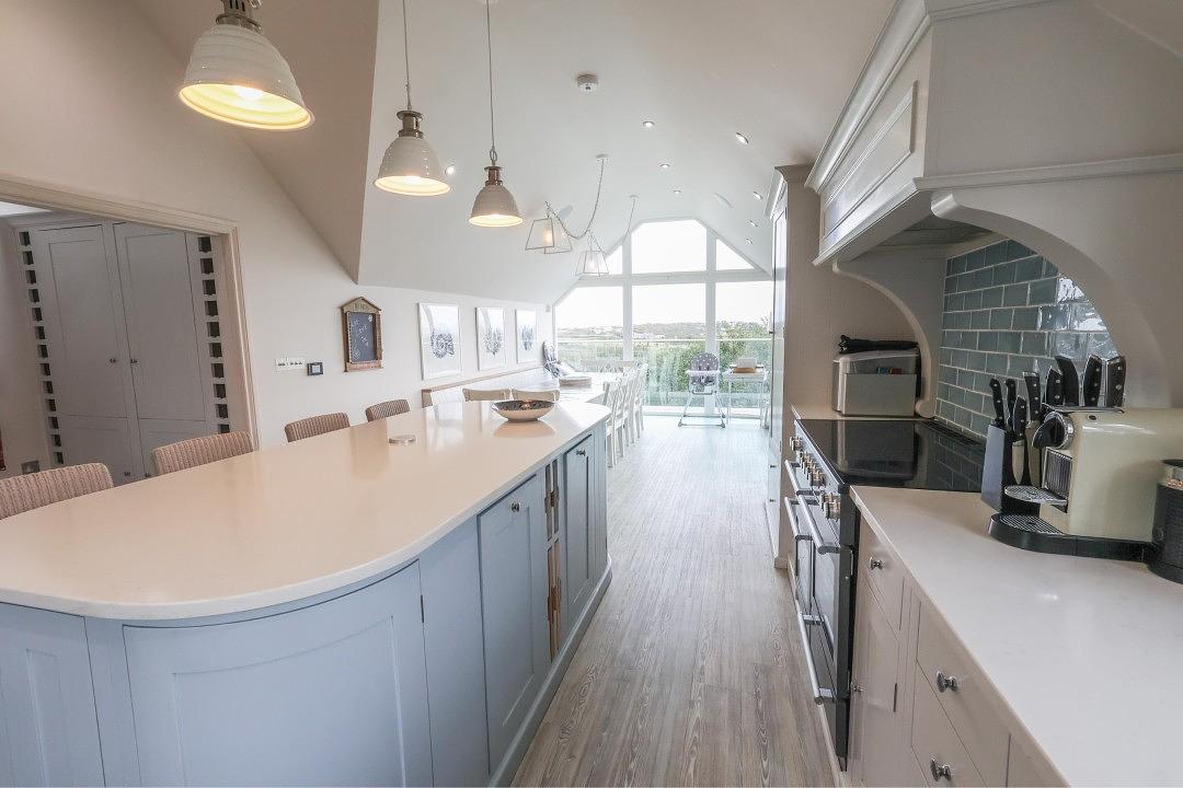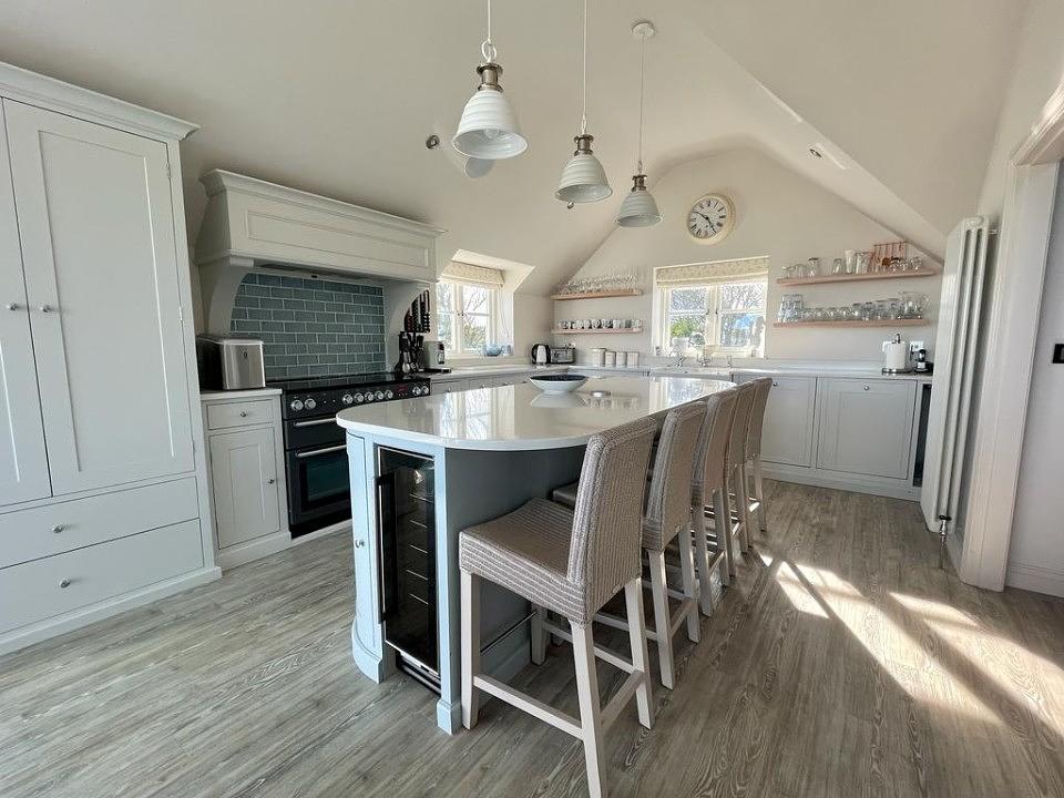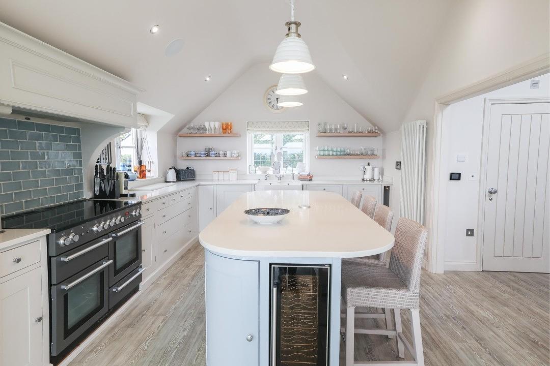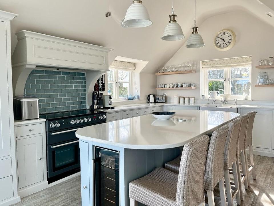 Fully fitted modern kitchen with a Rangemaster oven, boiling water tap, Insinkerator, Magimix, two dishwashers and a wine fridge,