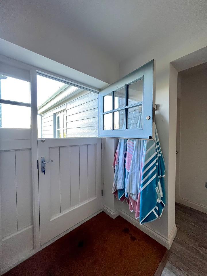 Spacious utility room with two washing machines, tumble dryer, hoover, iron/ironing board and 'dutch maid' system for drying clothes