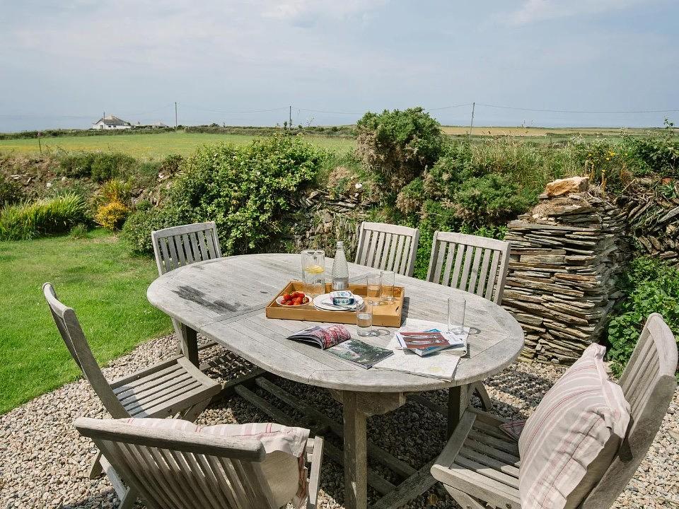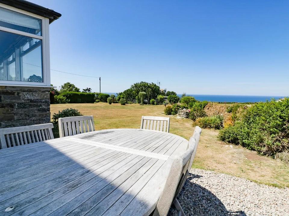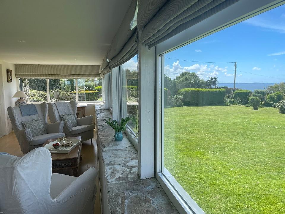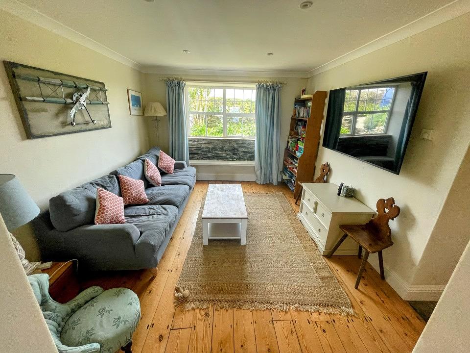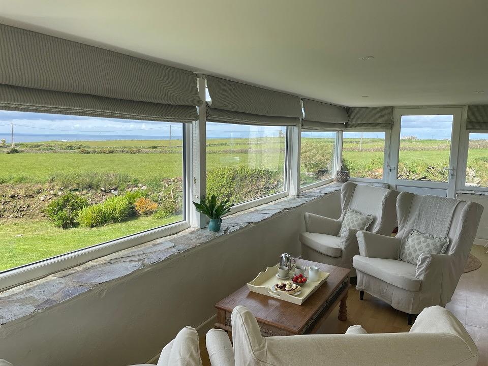The conservatory overlooks the enclosed garden to the front of the property and has a stunning ocean view; families with children can enjoy watching the children outside from the warmth and comfort of the conservatory, a big attraction when the wind blows!