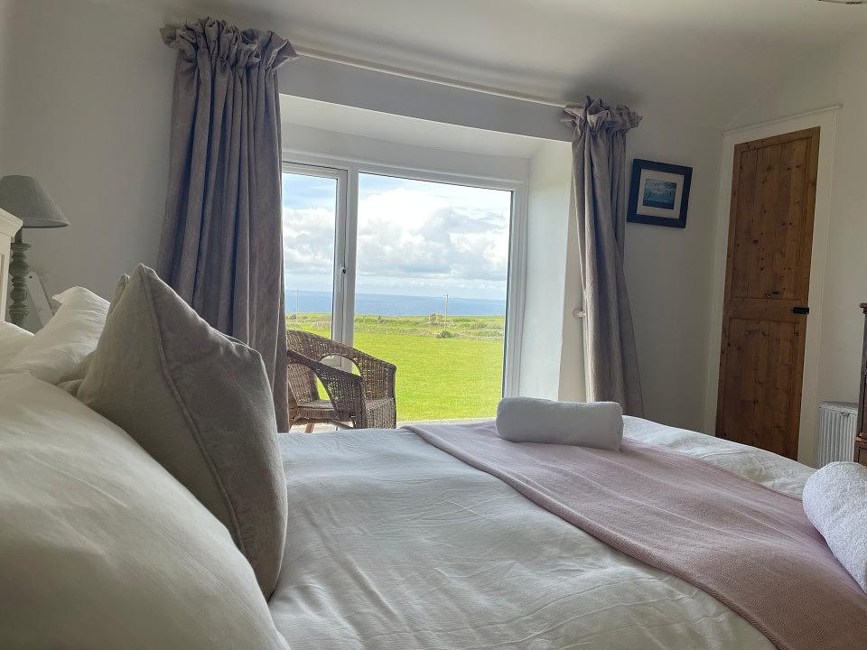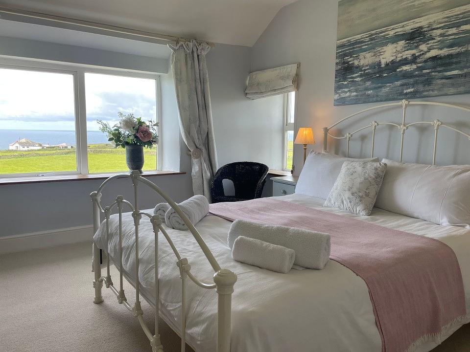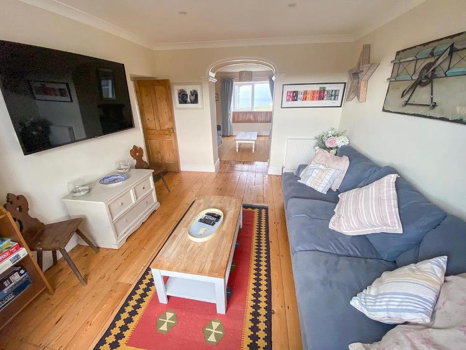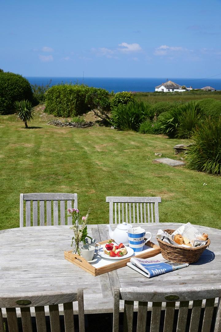 The conservatory overlooks the enclosed garden to the front of the property and has a stunning ocean view; families with children can enjoy watching the children outside from the warmth and comfort of the conservatory, a big attraction when the wind blows!