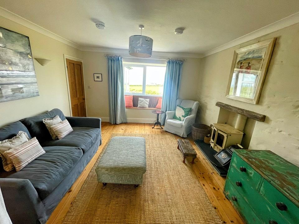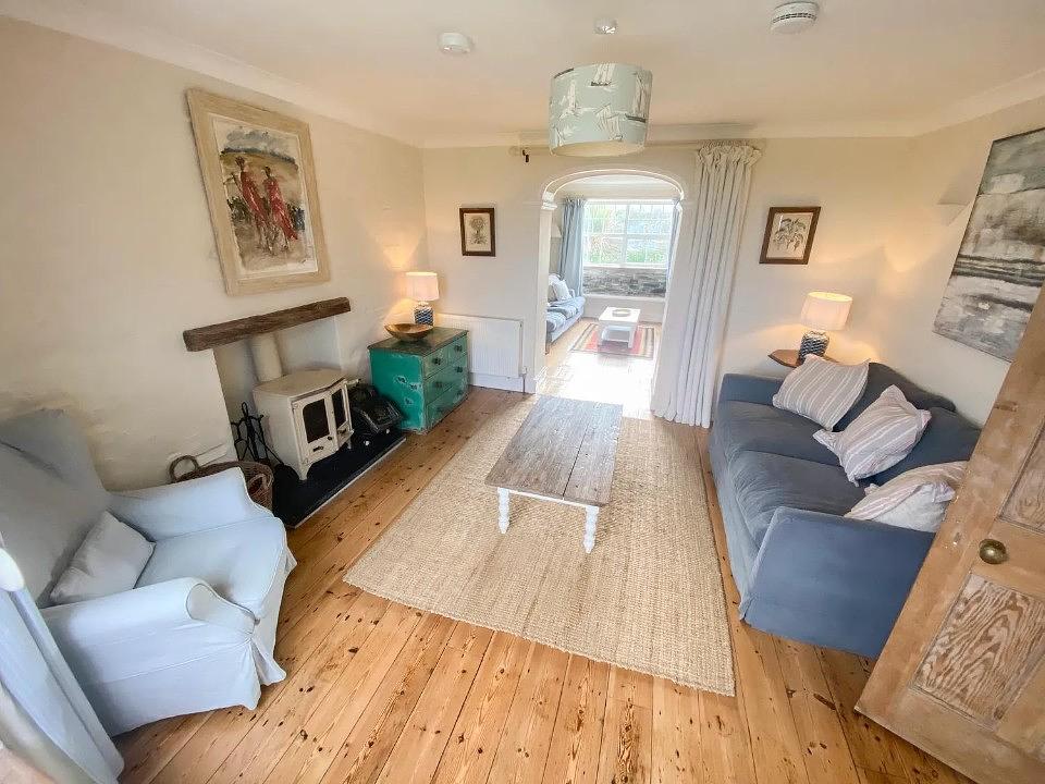 Connected to the kitchen/diner are two generously sized sitting rooms, which are separated by a beautiful, heavy curtain. This allows guests to have their own space - some may choose to watch TV while others can relax with a book by the wood-burning stove.