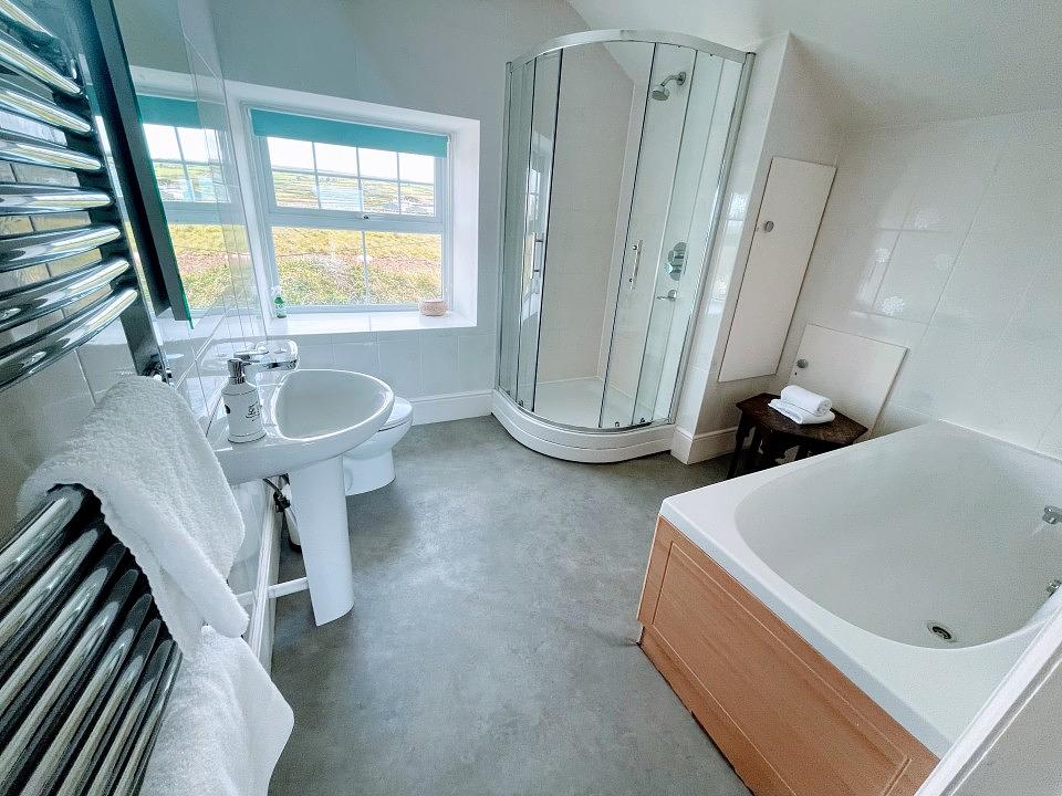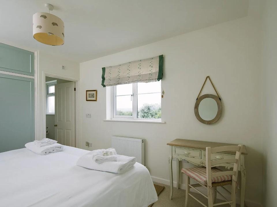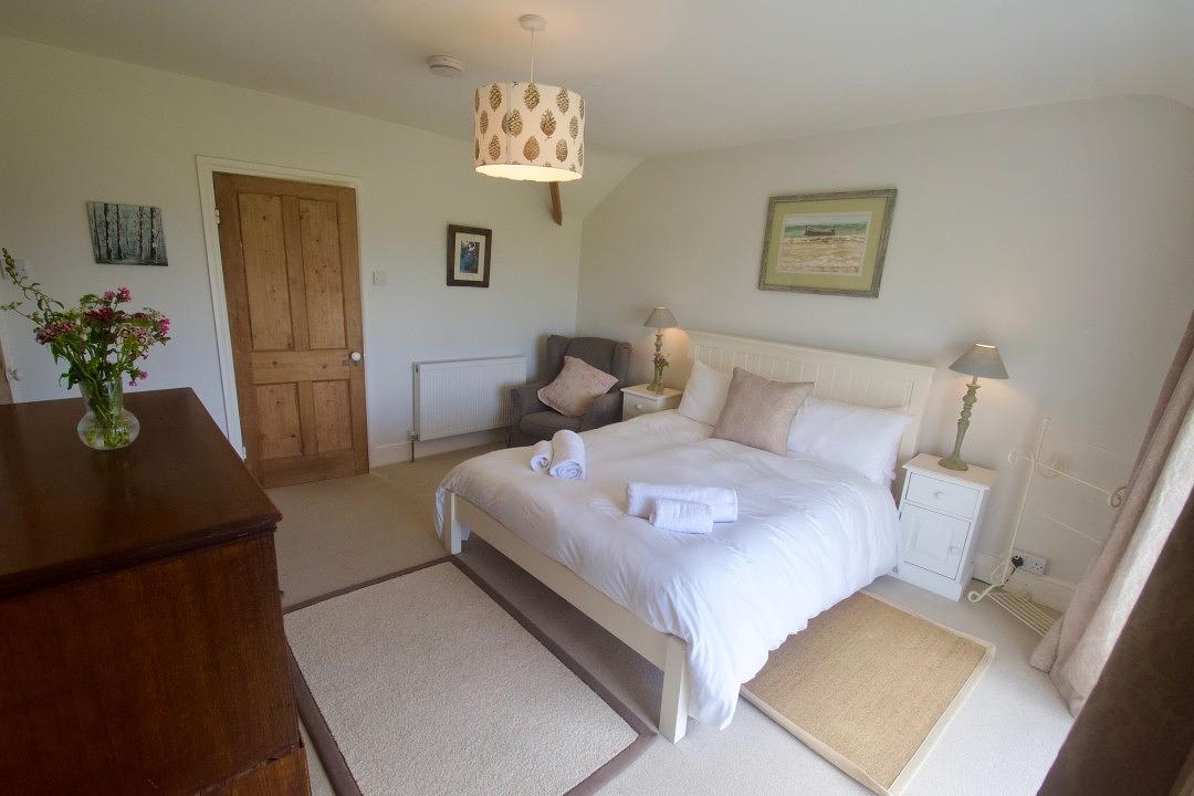 On the ground floor, there is a king-size bedroom with zip and link beds, providing flexibility to easily convert it into a twin room if needed. The adjoining en-suite shower room makes this bedroom an ideal choice for guests with mobility issues.