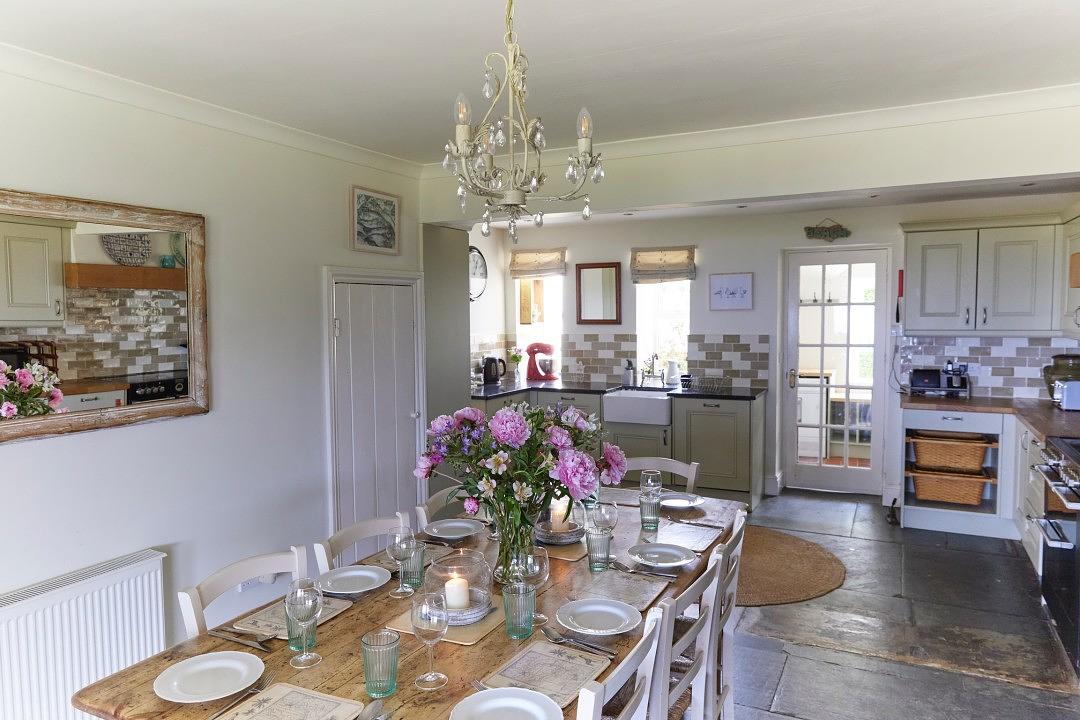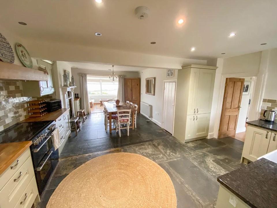 Designed to accommodate large groups, the kitchen is equipped with a dishwasher, two fridge/freezers, and a large Range cooker. The dining table is thoughtfully placed at the far end of the kitchen, allowing for a lovely open-plan feel.