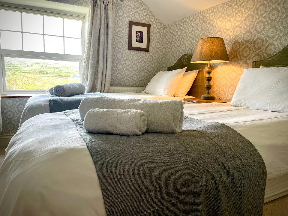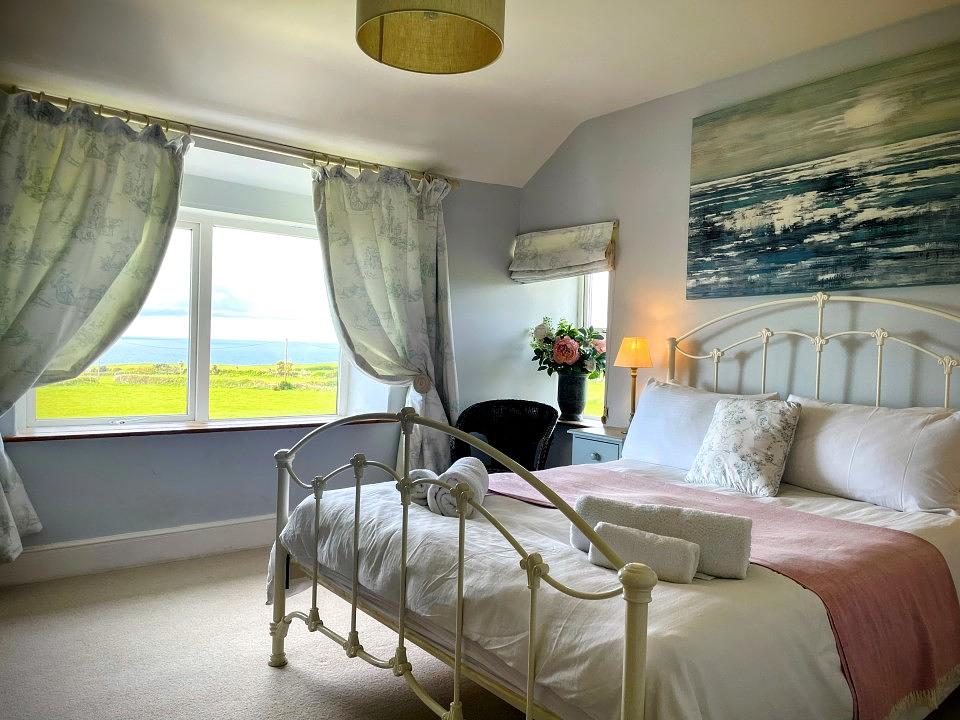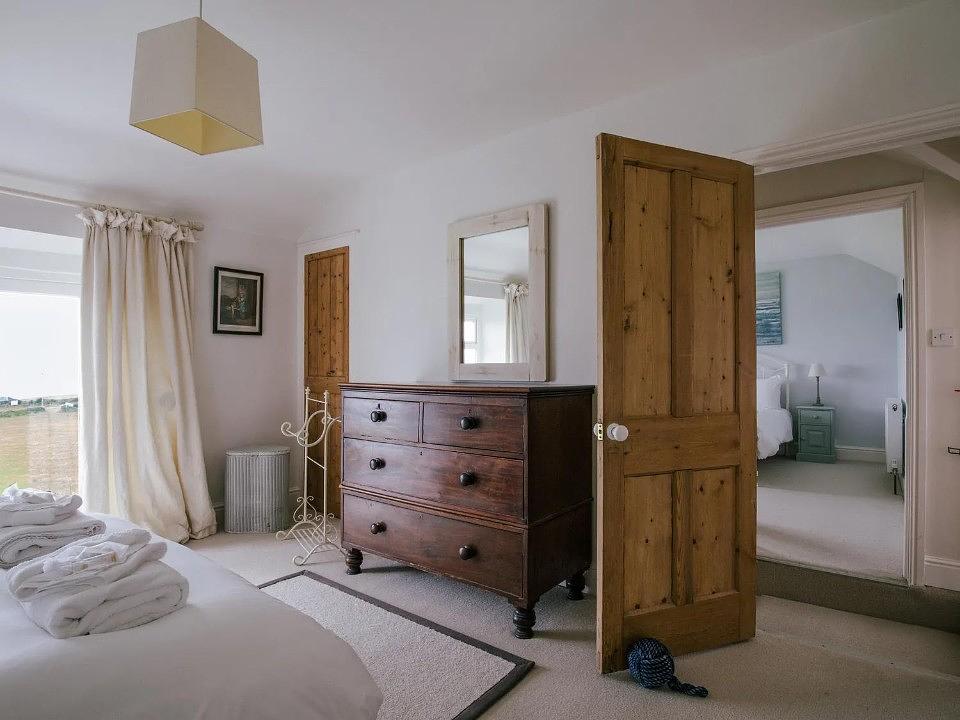The front rooms offer stunning coastal views, while the rear overlooks vast farmland. With ample private parking for four vehicles, Merlins Cottage is perfect for large gatherings.