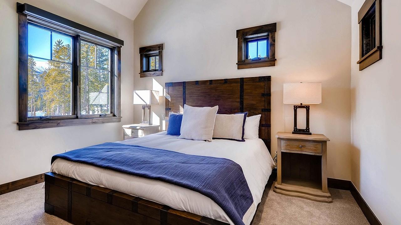 This luxurious residence features multiple king suites, each with private ensuite bathrooms. On the upper level is a primary king suite with TV, sitting area, and stunning views. Enjoy a beautiful ensuite featuring a soaking tub and large shower. A second king suite also has its own ensuite.